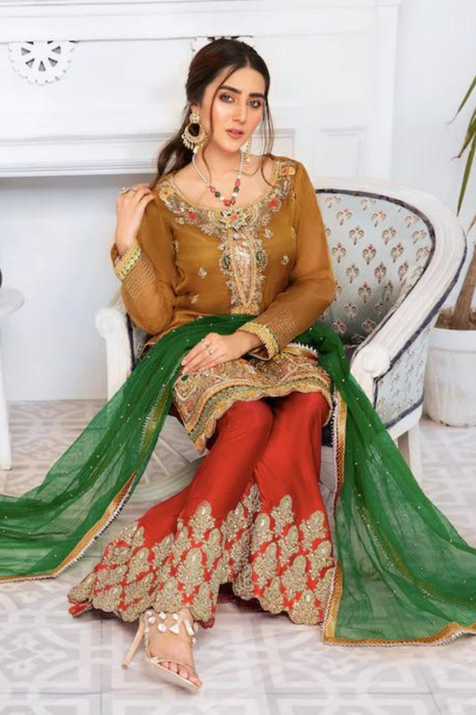 Our designs are inspired by South Asian heritage, featuring exquisite Pakistani suits, embellished sharara and gharara sets, and versatile silhouettes that flatter all body types. From intricate embroidery to rich fabrics, every outfit is made with care to help you celebrate culture in style. For women in Dubai and across the UAE, we offer fast local shipping and personalized service to ensure a smooth shopping experience—whether you're shopping for partywear or everyday elegance.