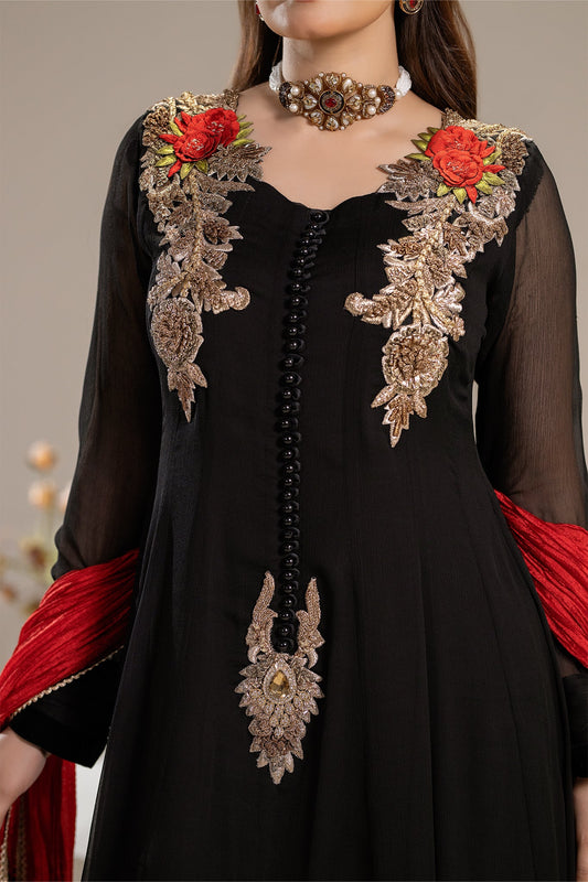 Handmade Black Chiffon Anarkali Size 44