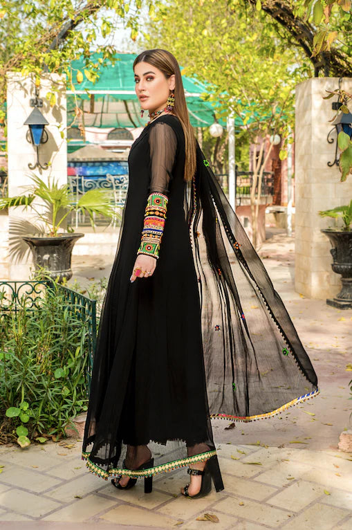 Black Handmade Pure Chiffon Sharara Size 40 & 44
