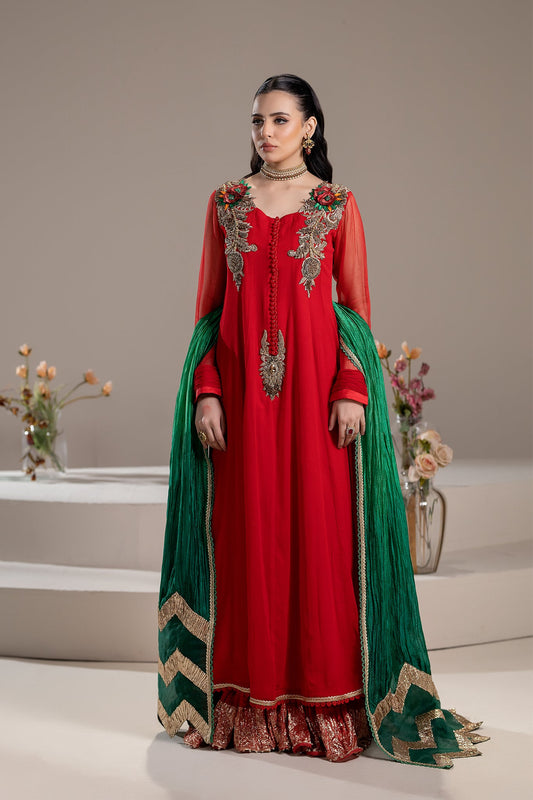 Red Handmade Pure Chiffon Sharara
