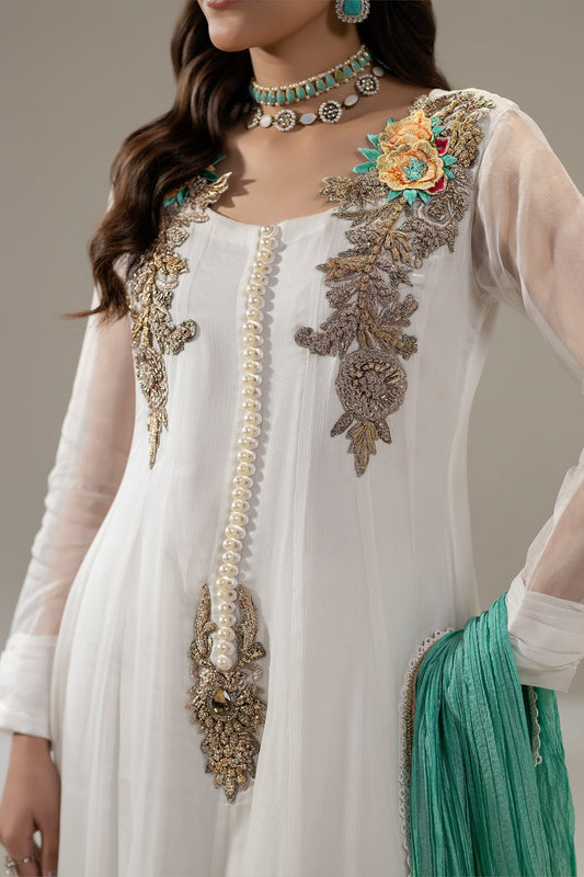 White Pure Organza Suit with Gota Work size 40