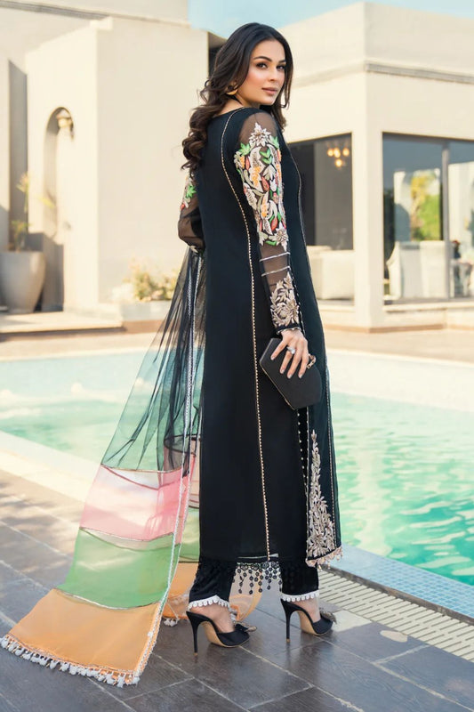 Black Pure Organza Suit with Pearl Work