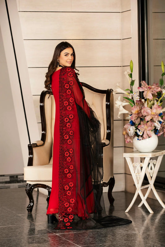 Hand Embroidered Pure Crinkle Chiffon + Pure Raw Silk Chunnari Suit