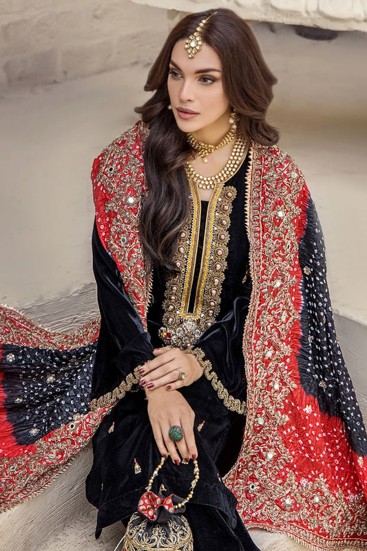 Hand Embroidered Pure Micro Velvet Suit with Chunri Size 36