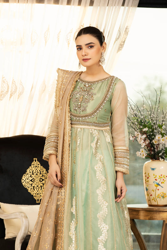 Hand Embroidered Turquoise Pure Chiffon Gharara