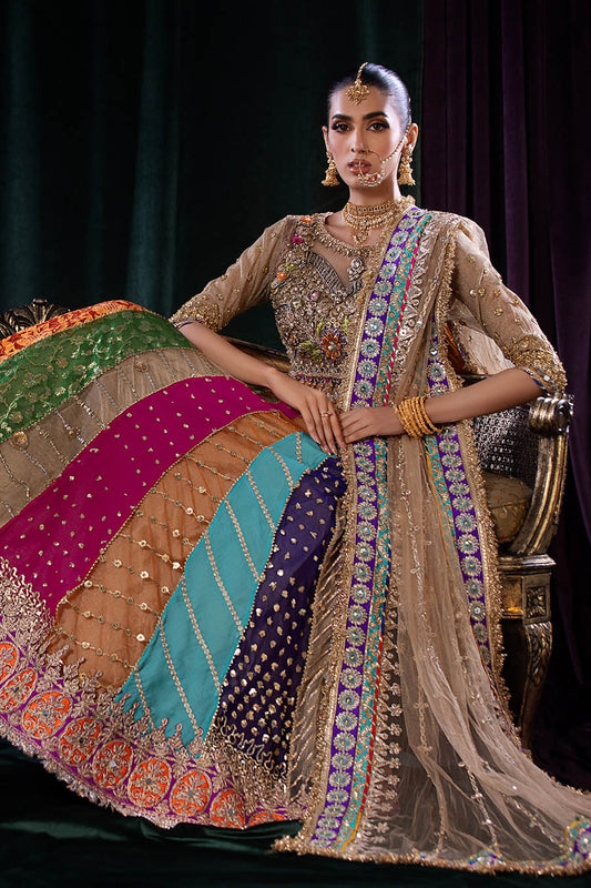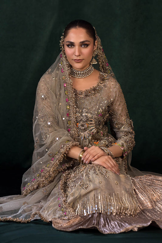 Hand Embroidered Pure Maysuri Golden Brown Bridal Sharara