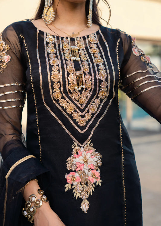 Hand Embroidered Pure Chiffon & Velvet Gharara