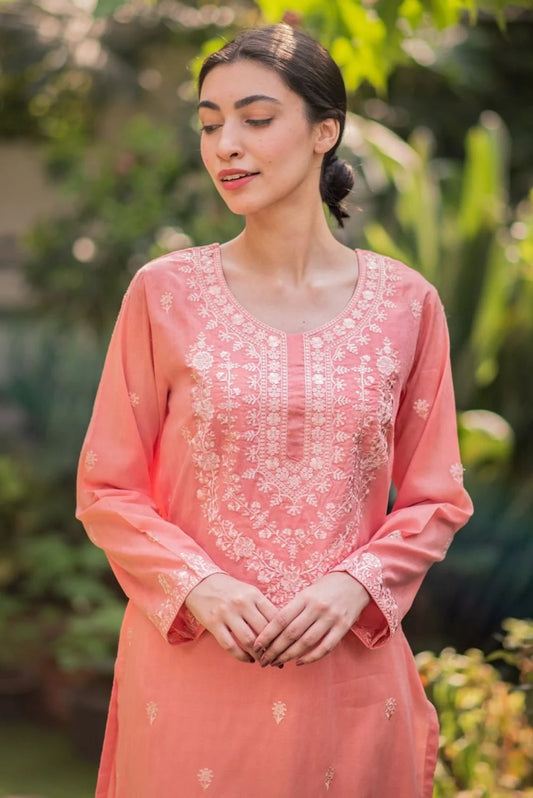 Peachy Pink Kurta with Straight Pants