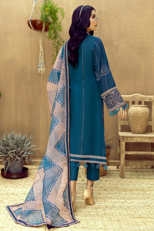 Sold outPeacock Blue Embroidered Lawn Suit