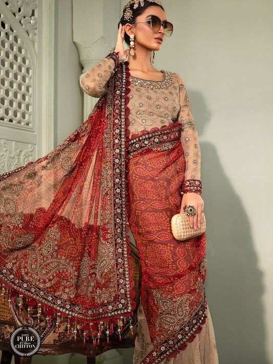Readymade Coffee and Maroon Chiffon Saree