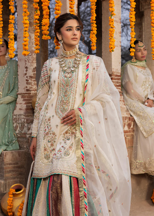 White Embellished Silk Jamawar Sharara
