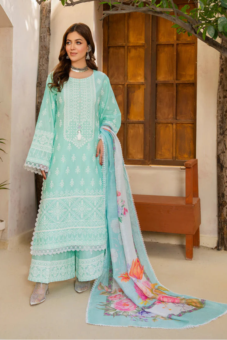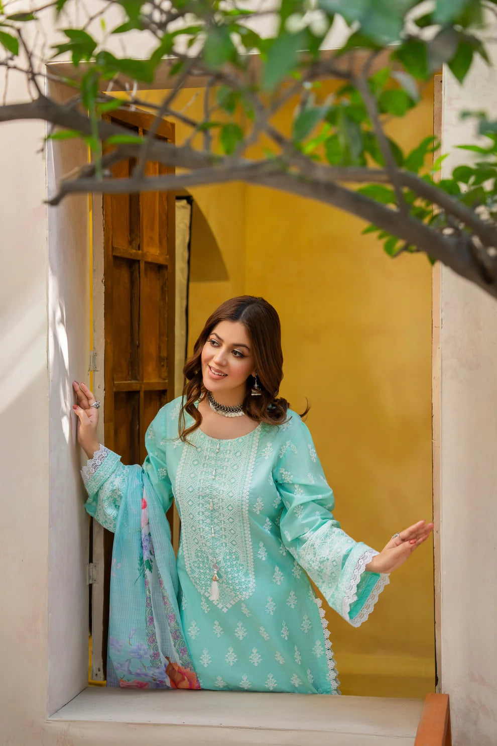 Aqua Mint Heavy Embroidered Pure Cotton Suit with Matte Thread Work