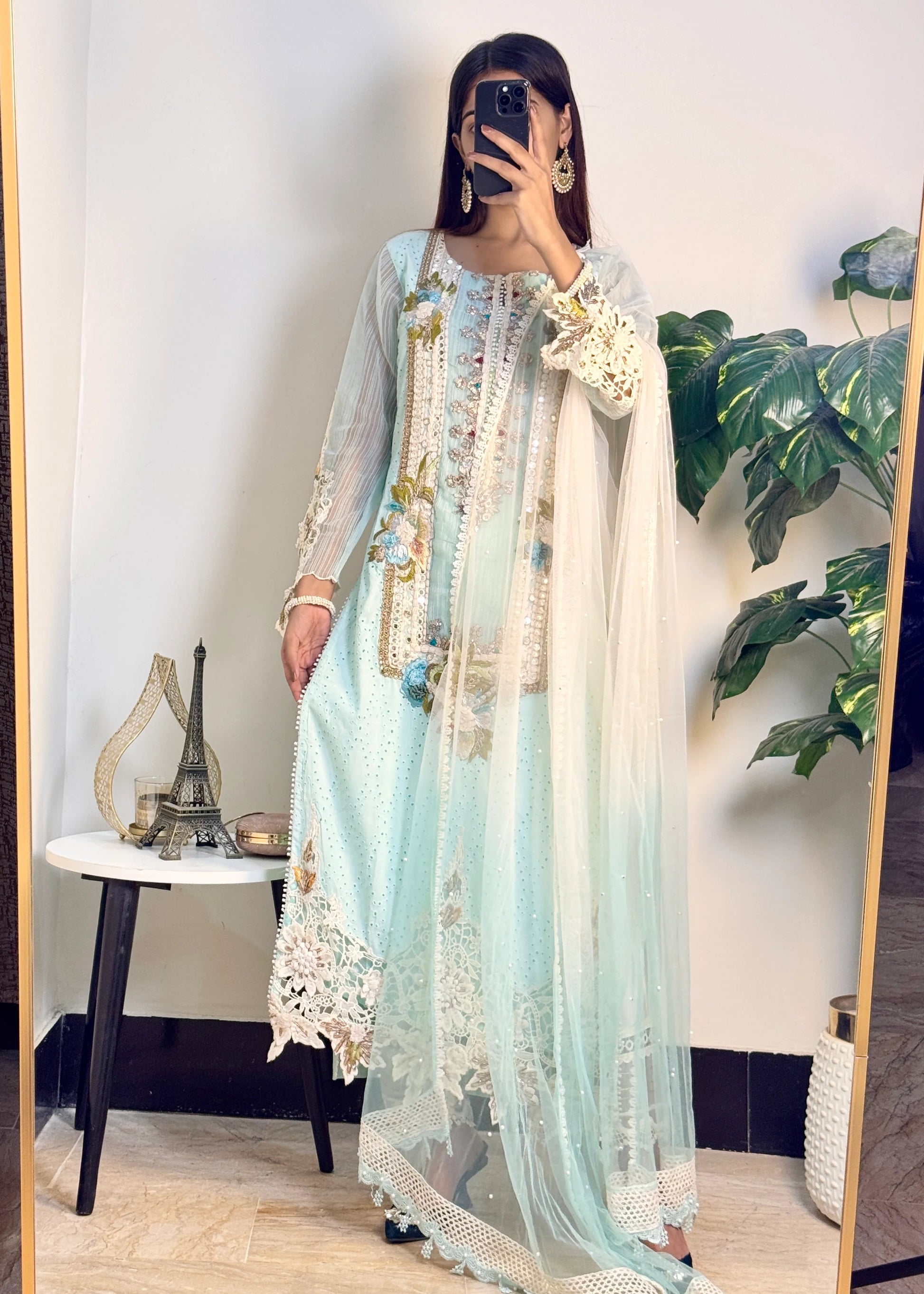 3D & Crochet Hand Embroidered Cotton Chikankari Suit