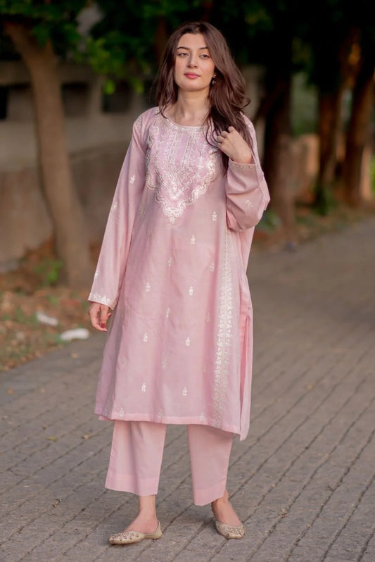 Baby Pink Embroidered Cotton Kurta