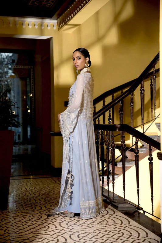 Sold outBaby Blue Embroidered Chiffon Suit