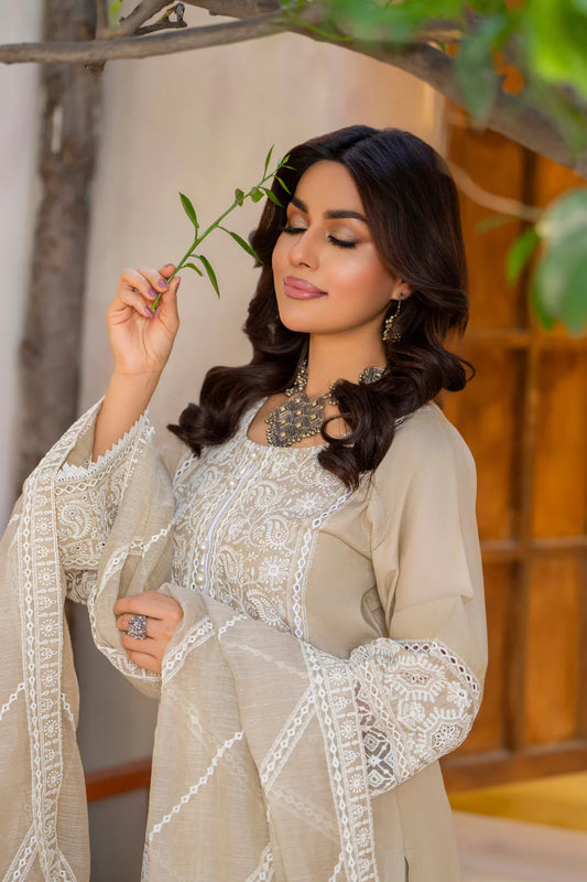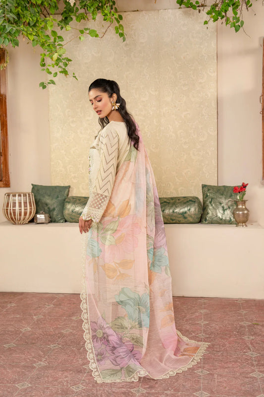 Ivory Lawn Suit with Schiffli Embroidery & Patchwork Details