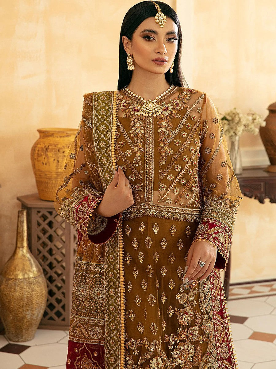 Hand Embroidered Mustard Pure Chiffon Suit Size 44