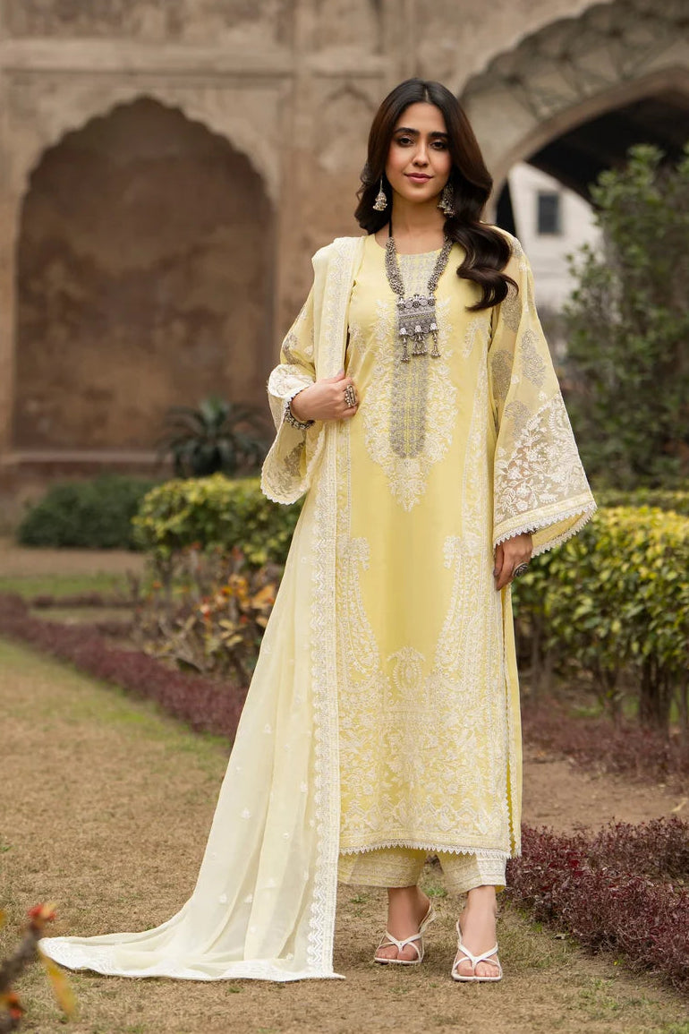 • Dupatta: Chiffon dupatta featuring intricate all-around embroidery, adding lightness and an elegant layered dimension.