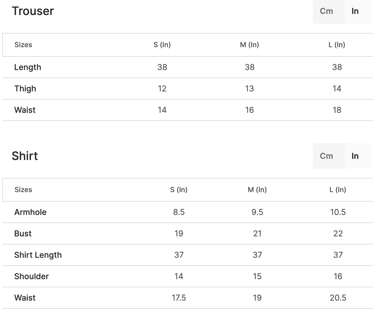 - Measurements are in inches and taken flat (one side only). To get full garment size, double the bust/waist/hip measurements.