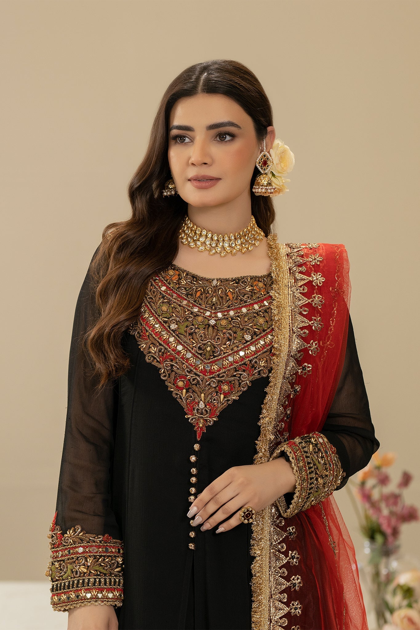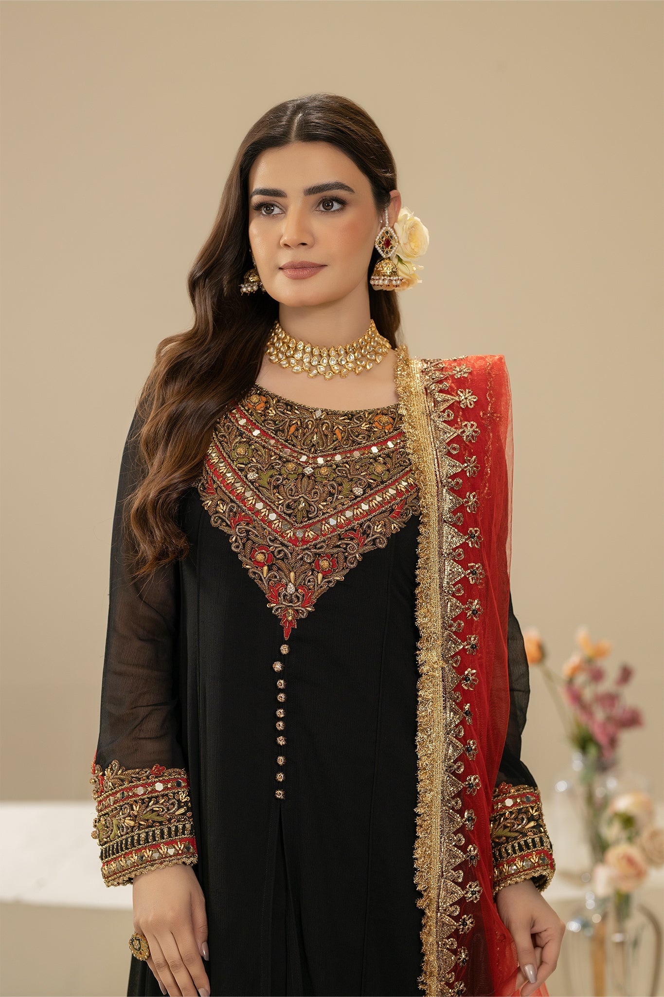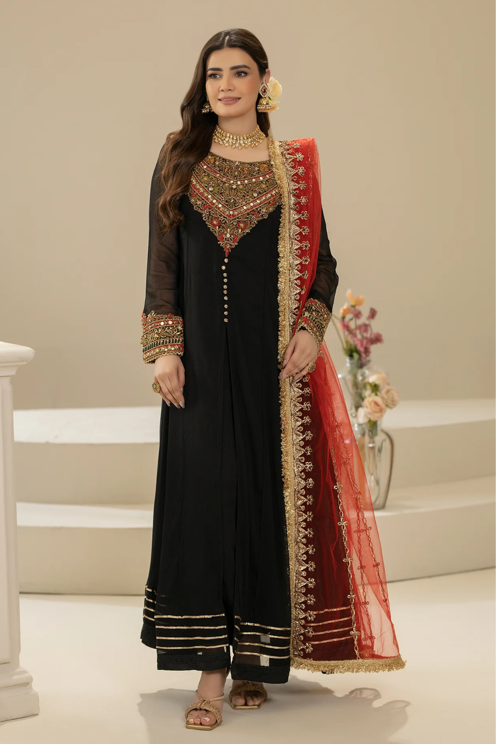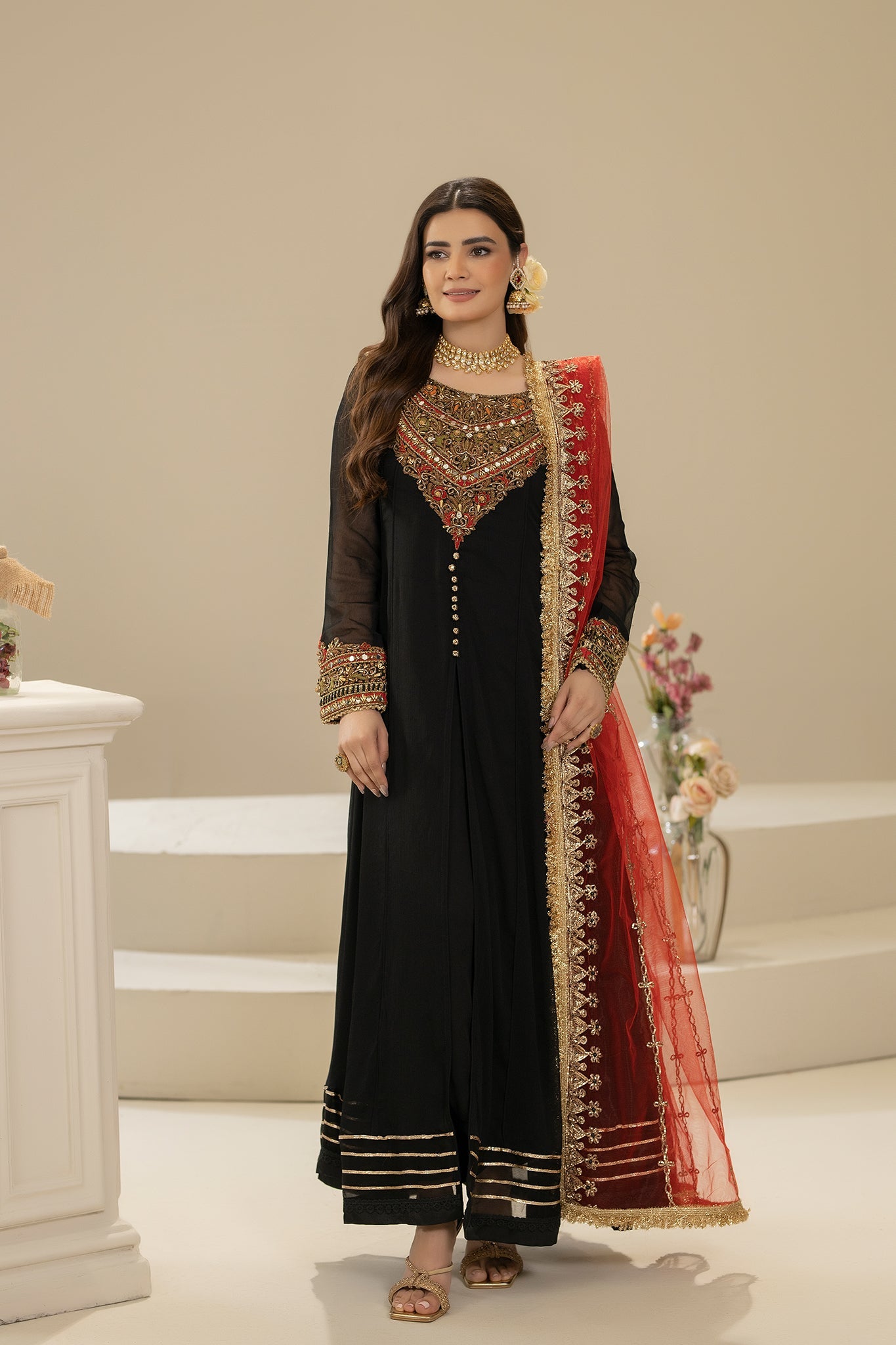 • Dupatta: Pure Net (Embroidered with Gota, Embellishments and Pearl)