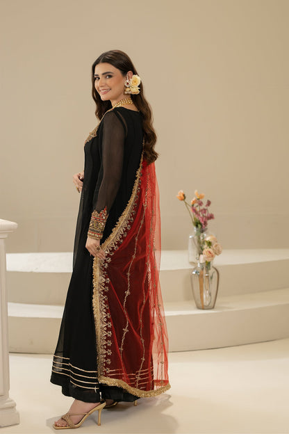Hand Embroidered Black Pure Chiffon Suit