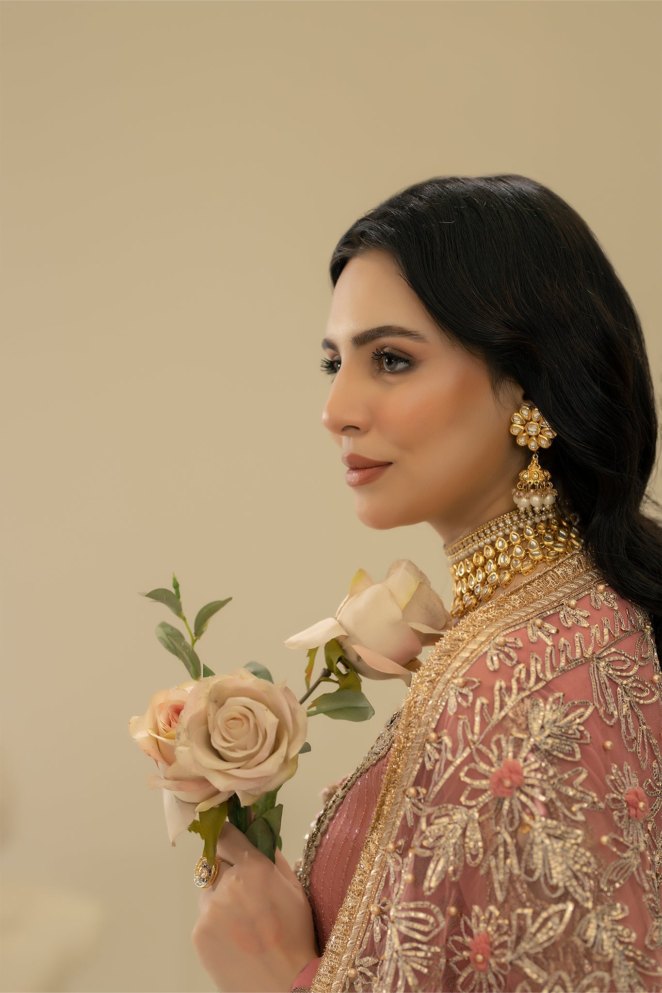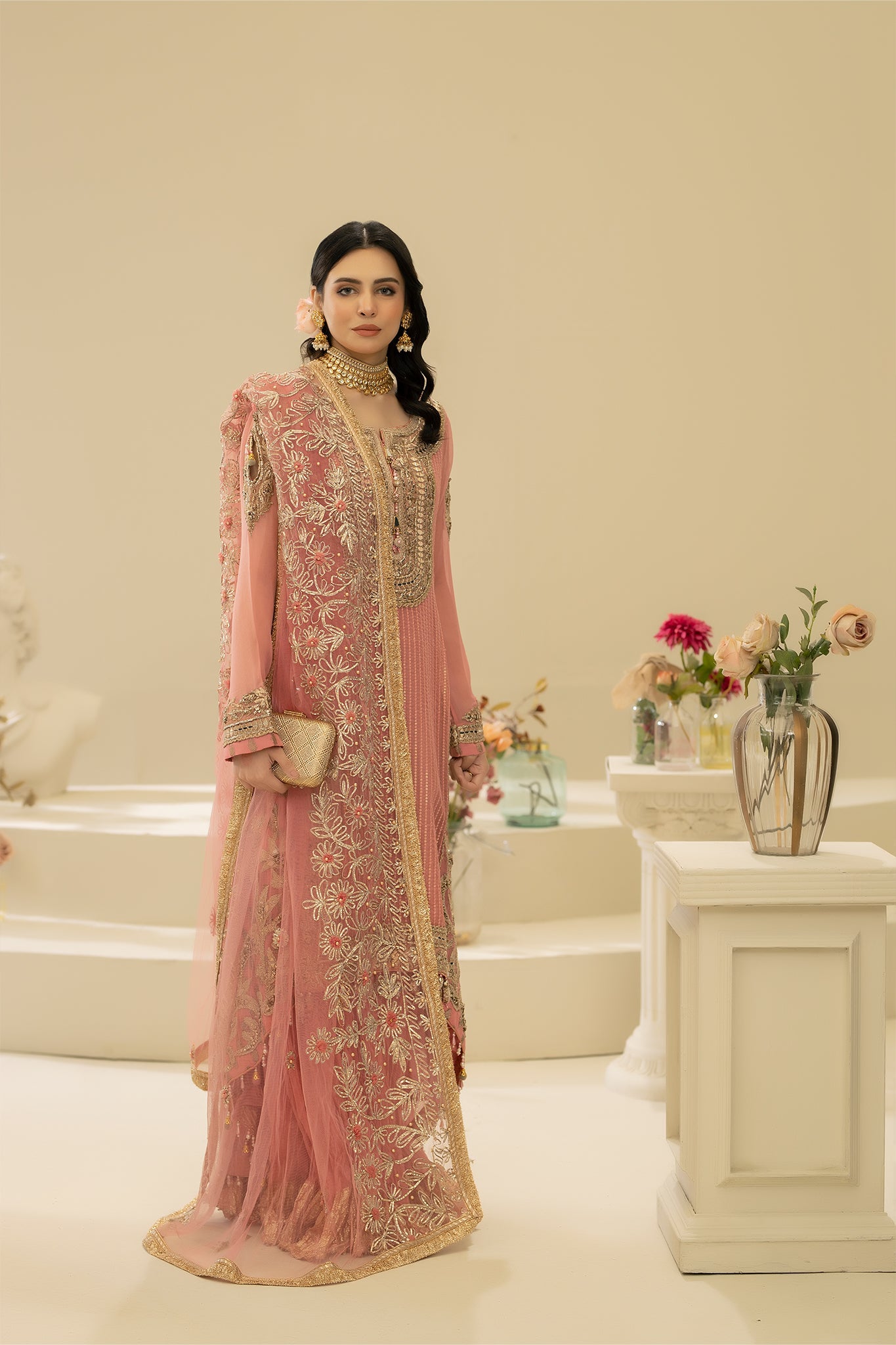 3. Dupatta: Pure Net (Embroidered with Gota, Tilla, Pearls and Embellishments)