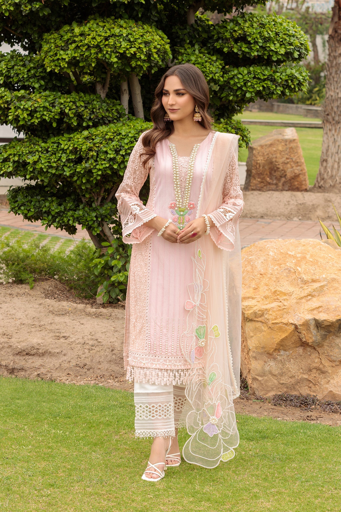 Hand Embroidered Pure Cotton Chikankari Suit with Heavy Pearl Work