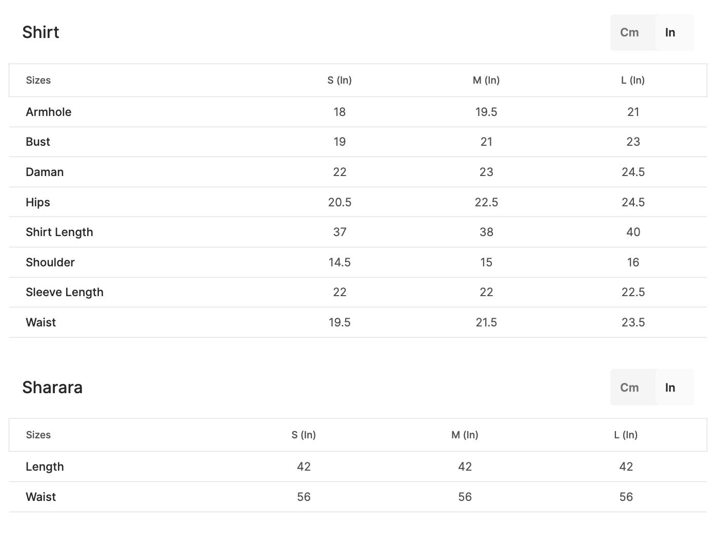 - Measurements are in inches and taken flat (one side only). To get full garment size, double the bust/waist/hip measurements.