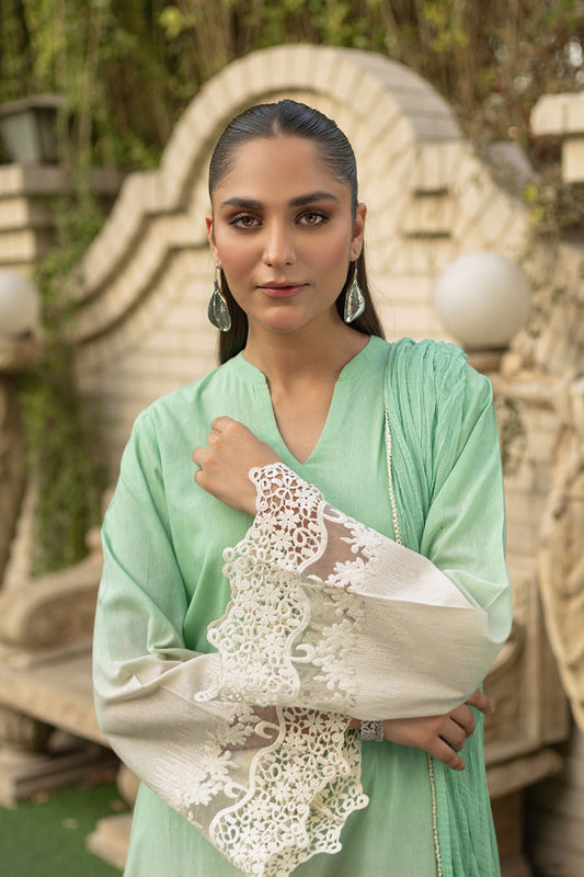Soft Green Readymade Crochet Kurta Set with Dupatta