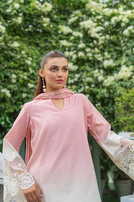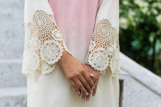 Soft Pink Readymade Crochet Kurta Set with Dupatta