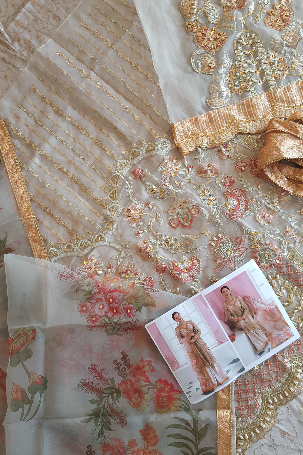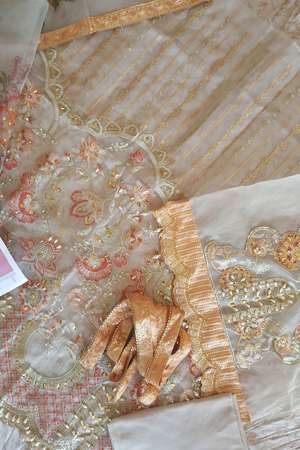 Embroidered Digital Printed Organza Dupatta with attached 4 Side Embroidered Lace Finished.