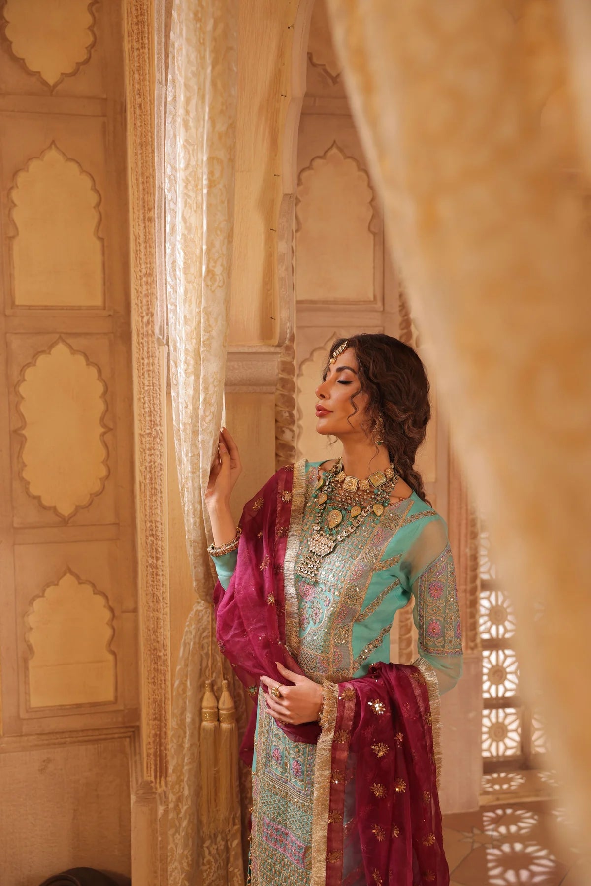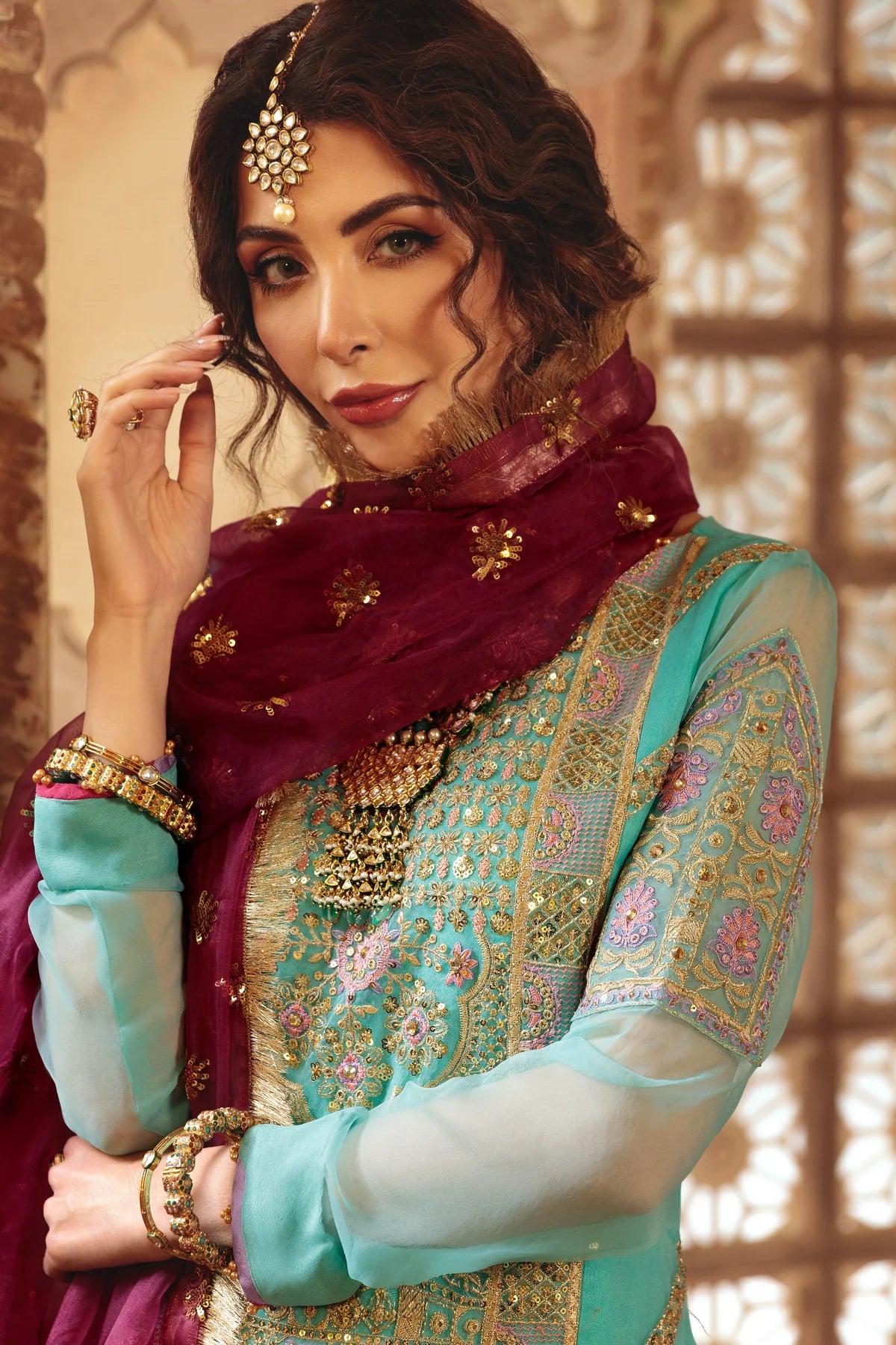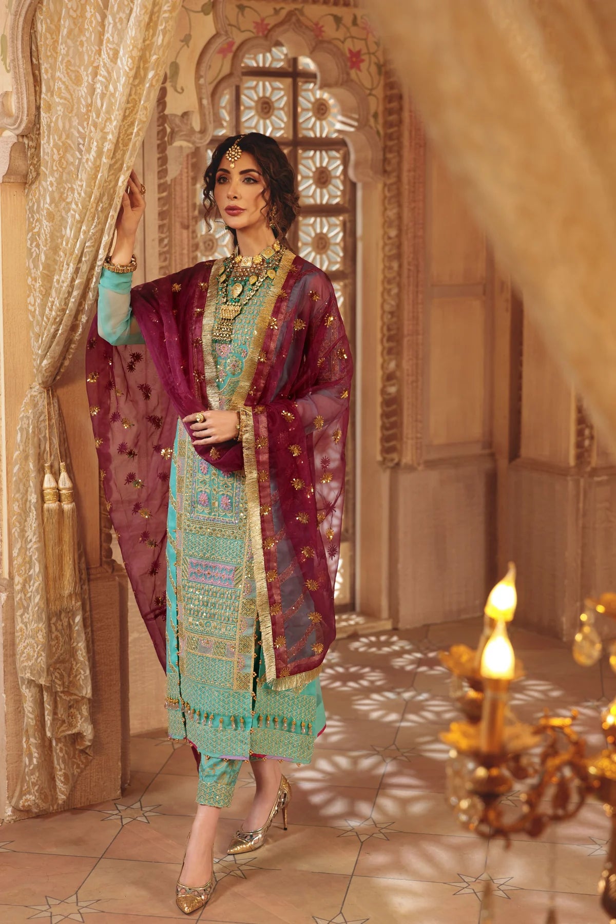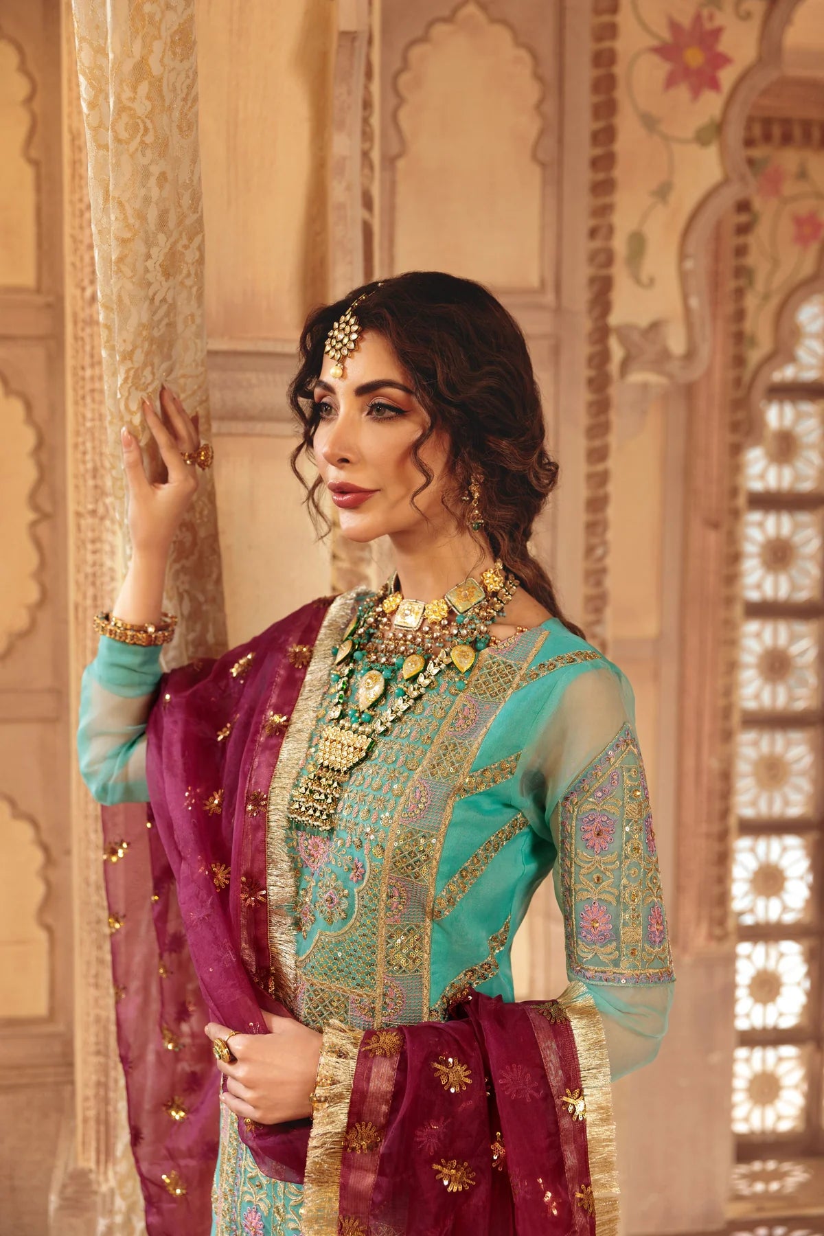 Sequins Embroidered Organza Shirt Central Panel 1 Pc
