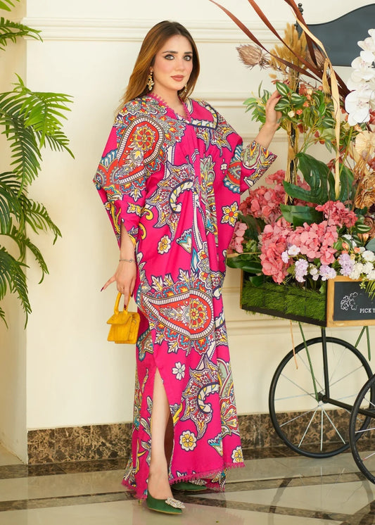Hot Pink Long Silk Kaftan