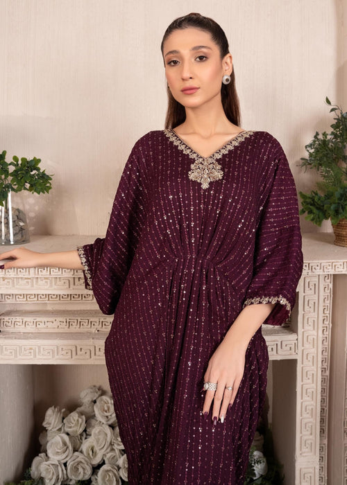Maroon Embroidered Chiffon Kaftan