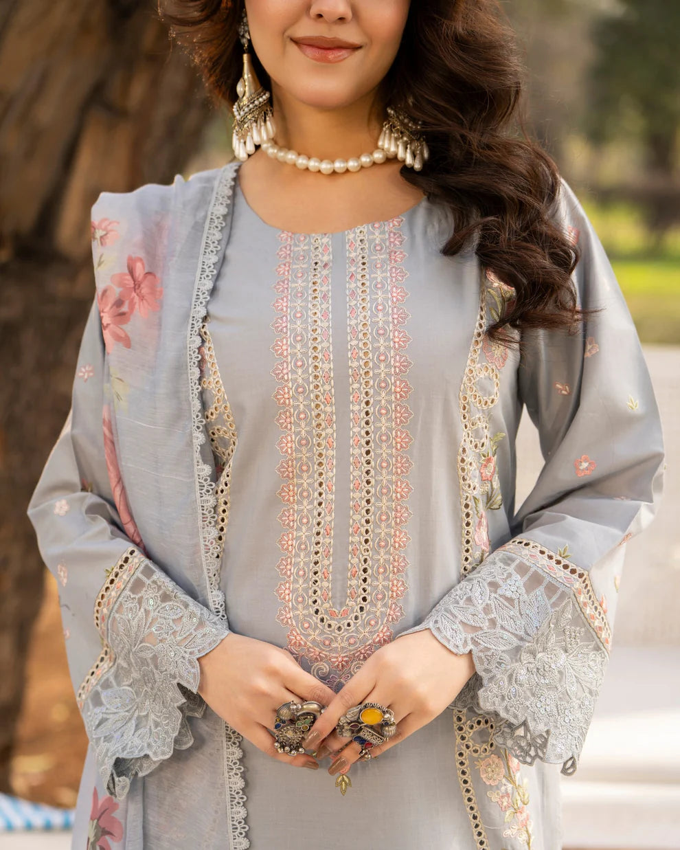 • Dupatta: Printed lawn dupatta adorned with all-around lace, adding a light and graceful contrast.
