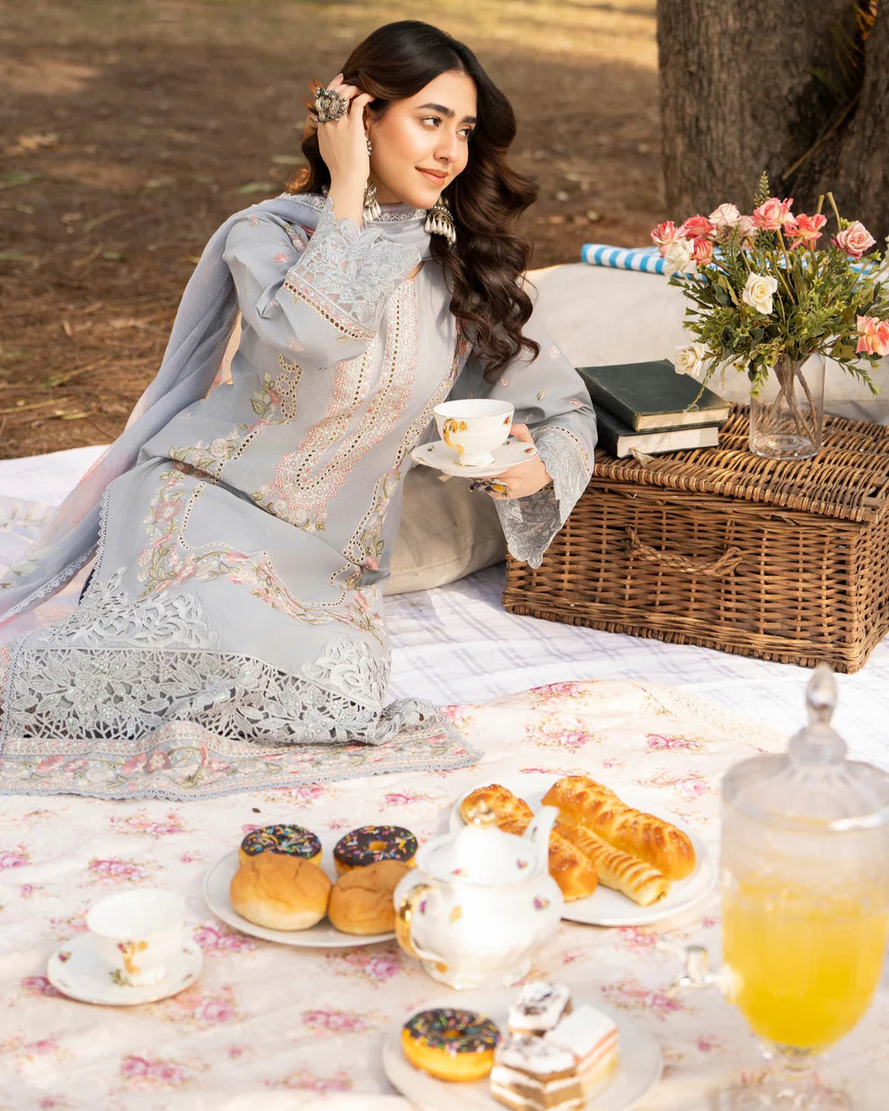 Ice Blue Chikankari Lawn Suit with Cutwork Details
