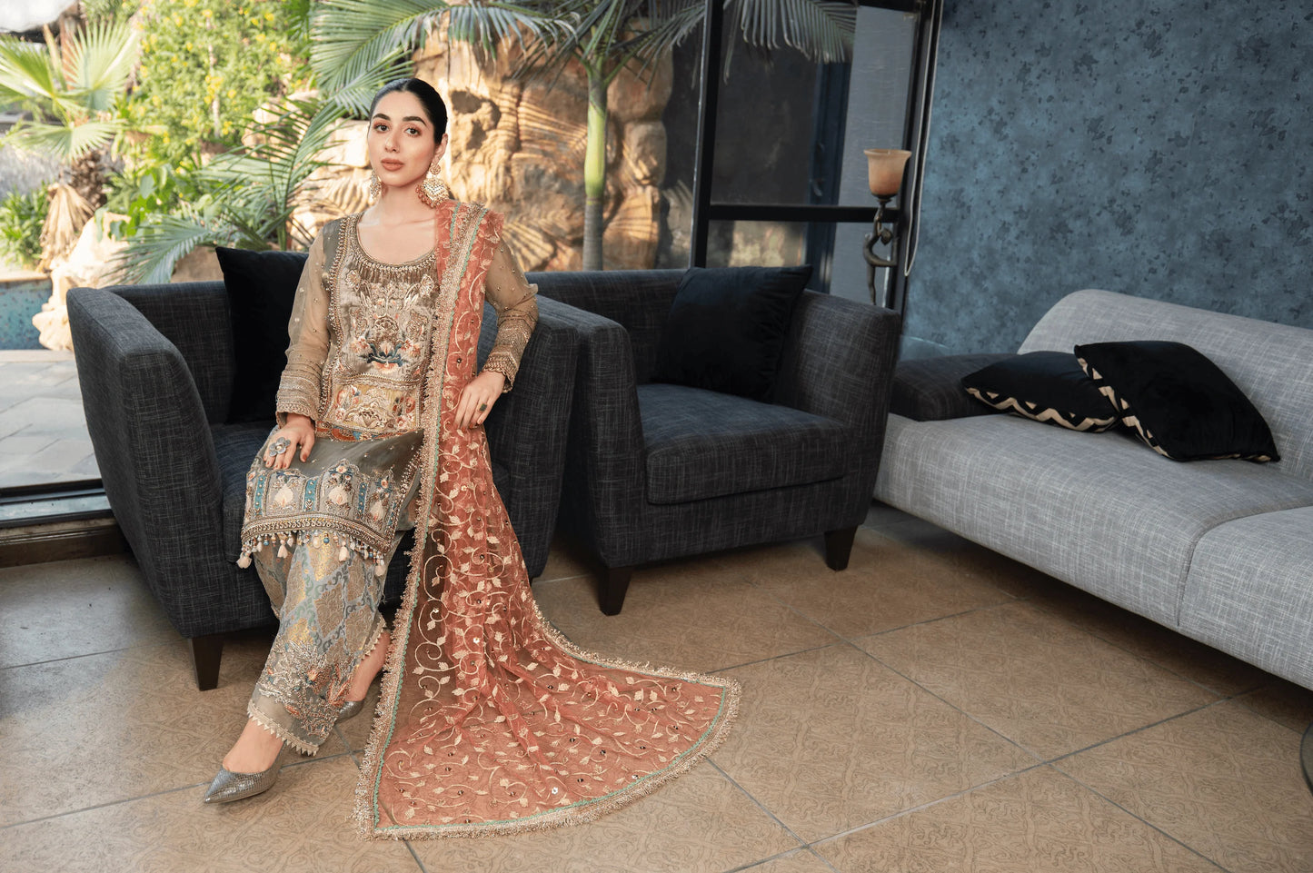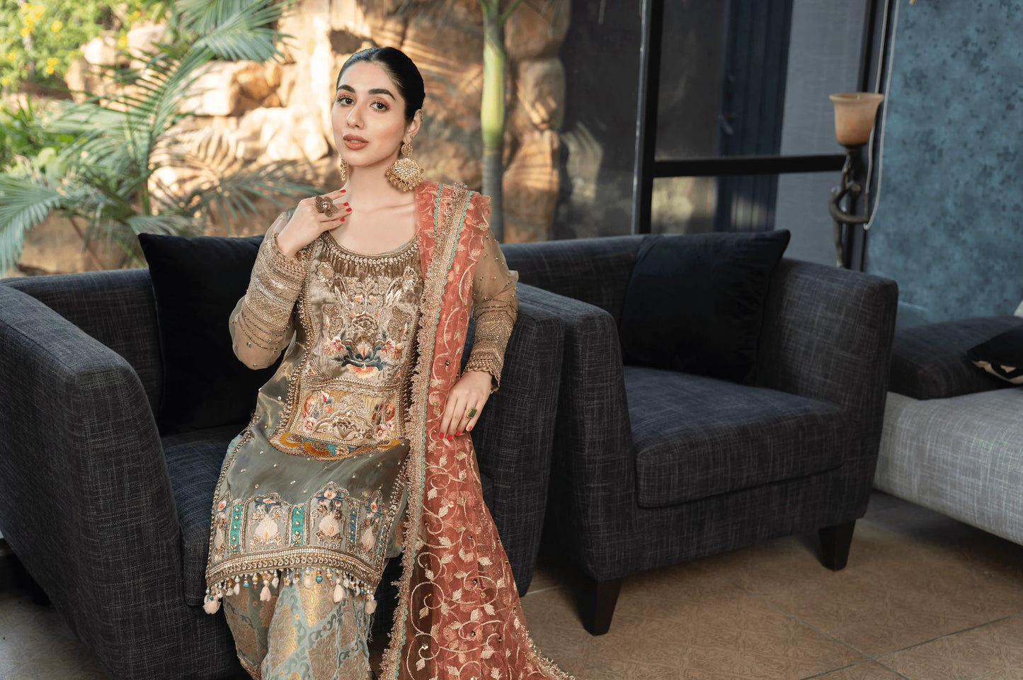 1. Shirt : Pure Resham Mesuri (Heavily Hand Embroidered with Gota, Kora, Dabka).