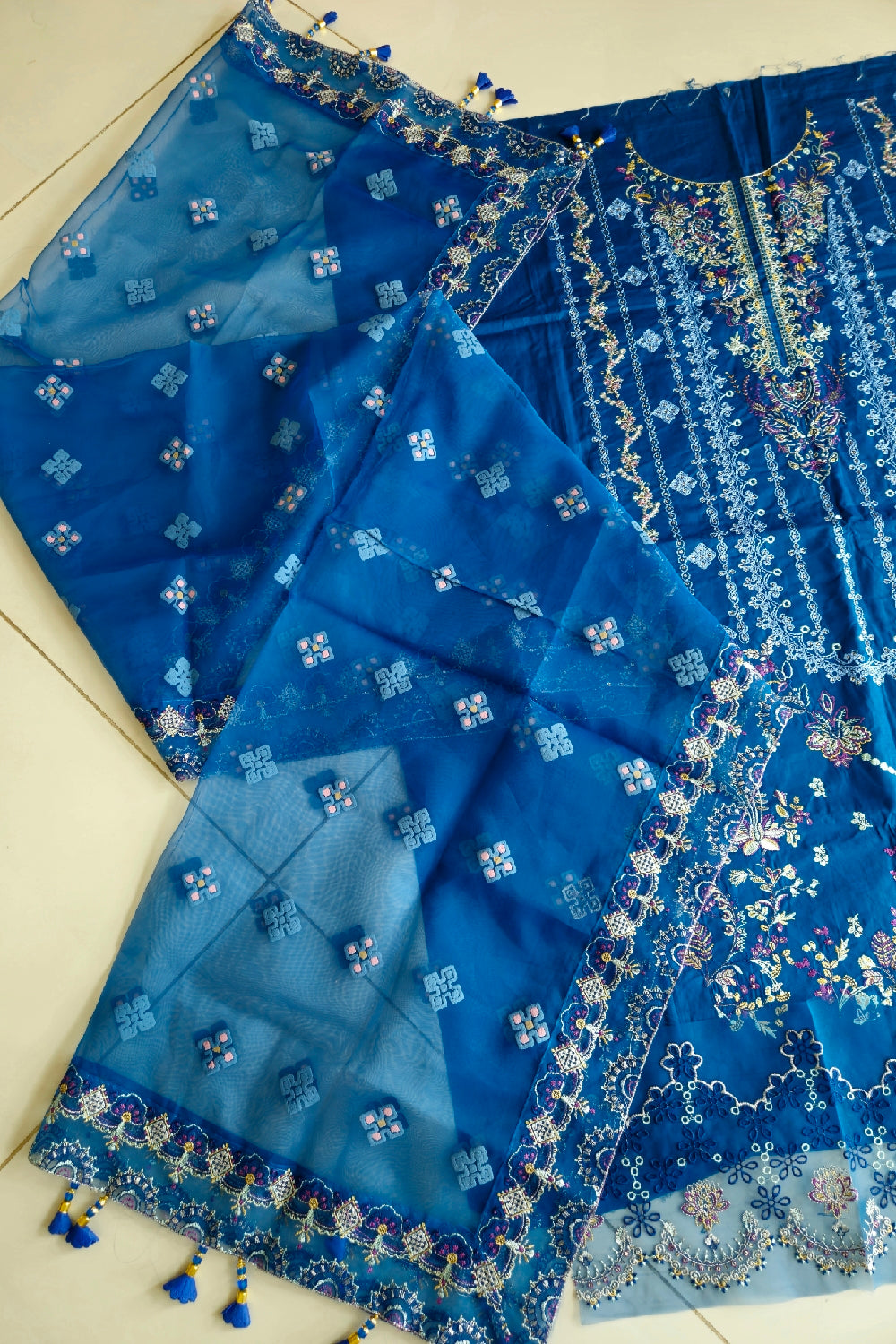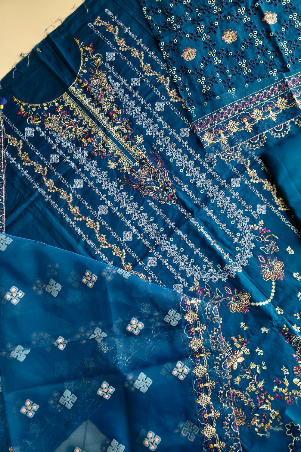 Chikankari Embroidered Organza Shirt Lace (Front+Back)