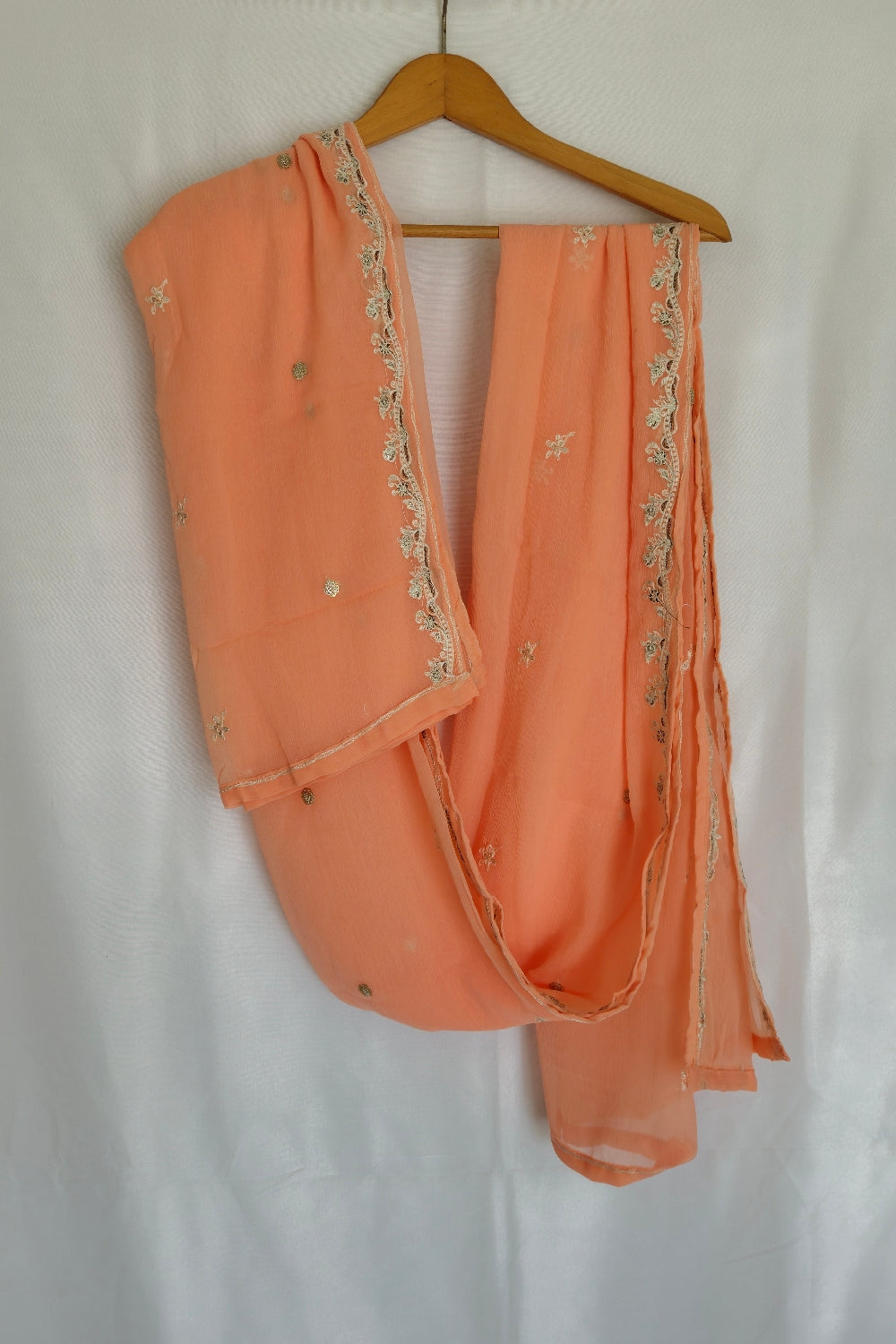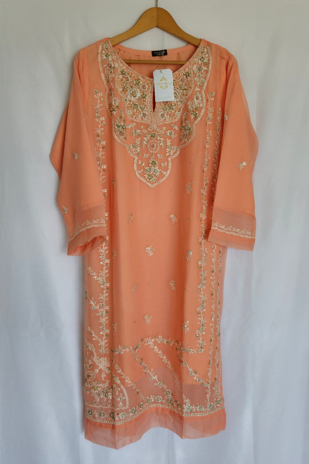 TWO PIECE 100% BAMBER PURE CHIFFON HEAVILY EMBROIDERED SHIRT WITH DUPATTA