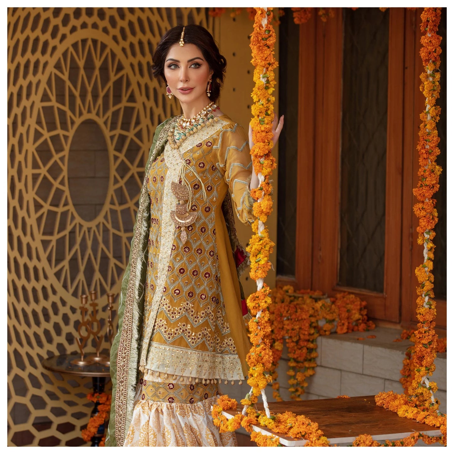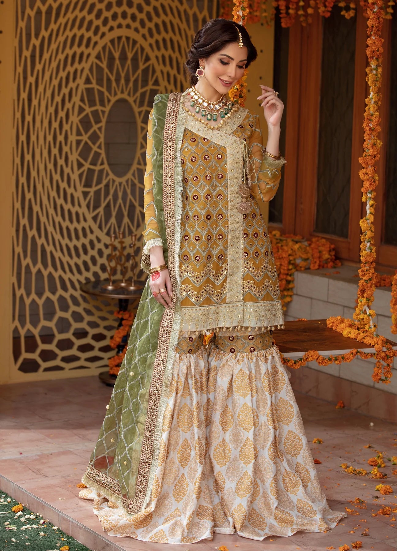 Gold Paste Hand Printed Gharara