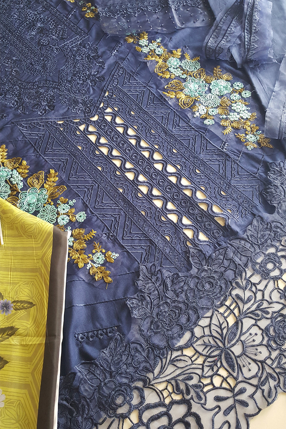 • Embroidered Organza Motif & Embroidered Pearls Work Sleeve Lace.