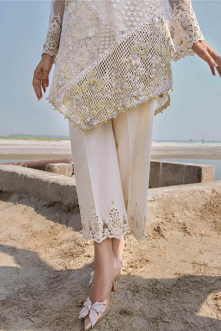 • Trousers: 100% cotton with embroidered patch with scalloped edges and metallic thread detailing