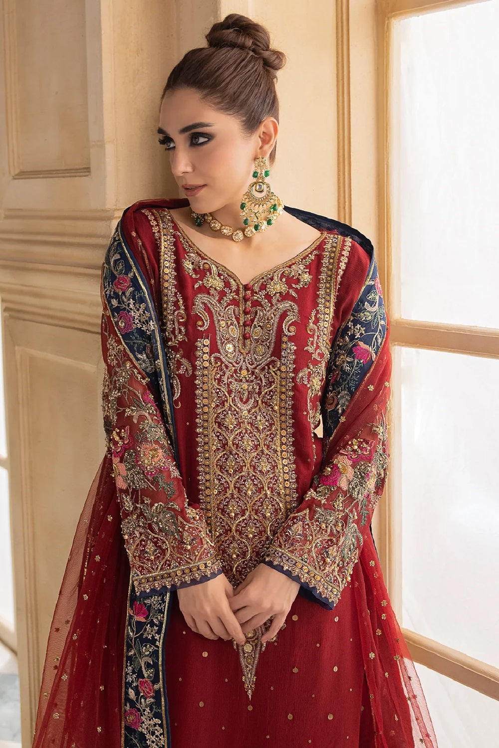 Red Hand Embellished Chiffon Suit