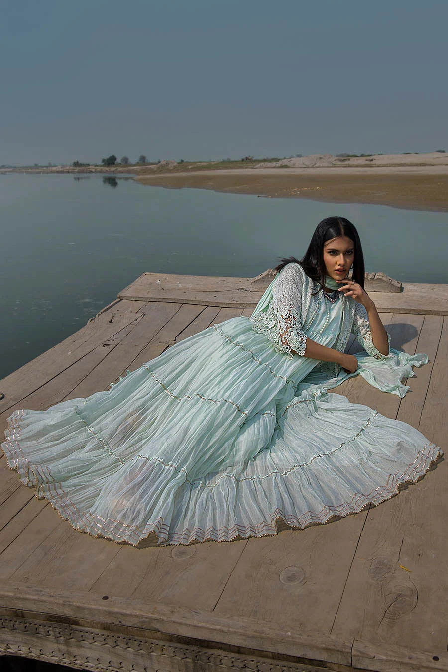 Light Mint Crocheted Maxi with 3D & Gota Work