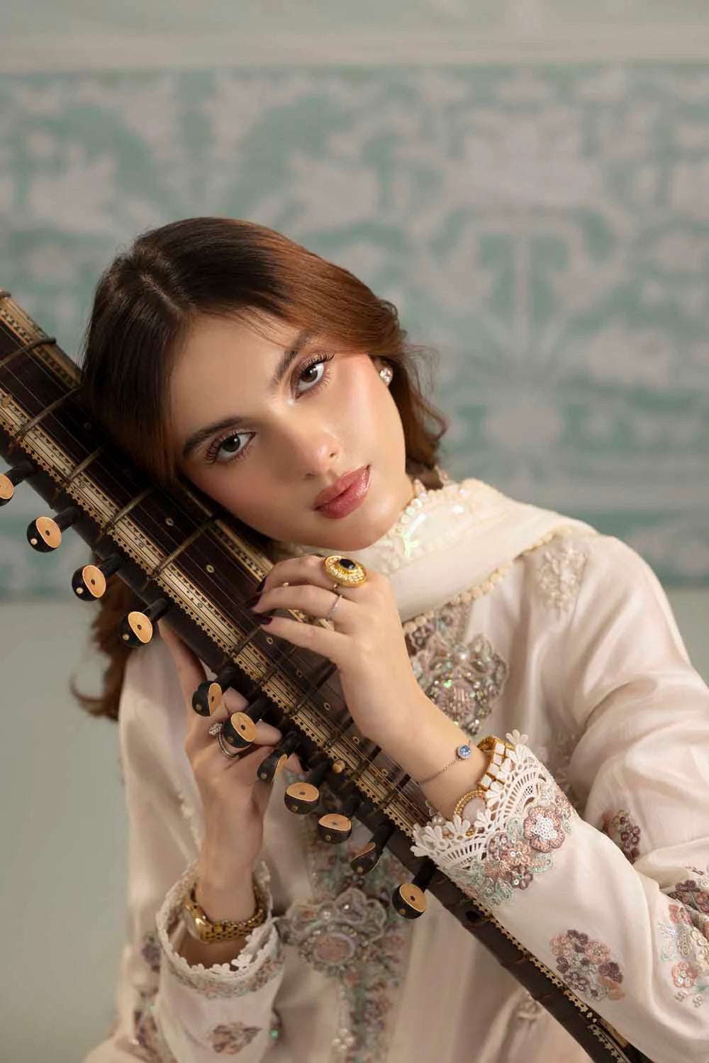 • Sleeves: Beautifully finished with embroidered borders and lace.