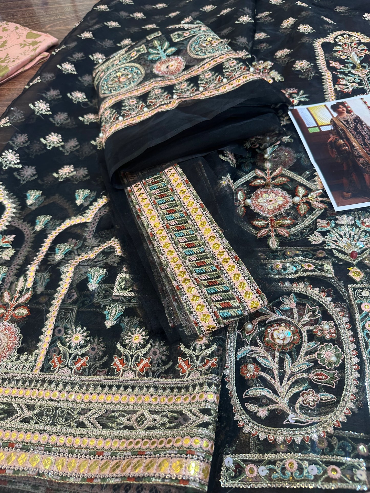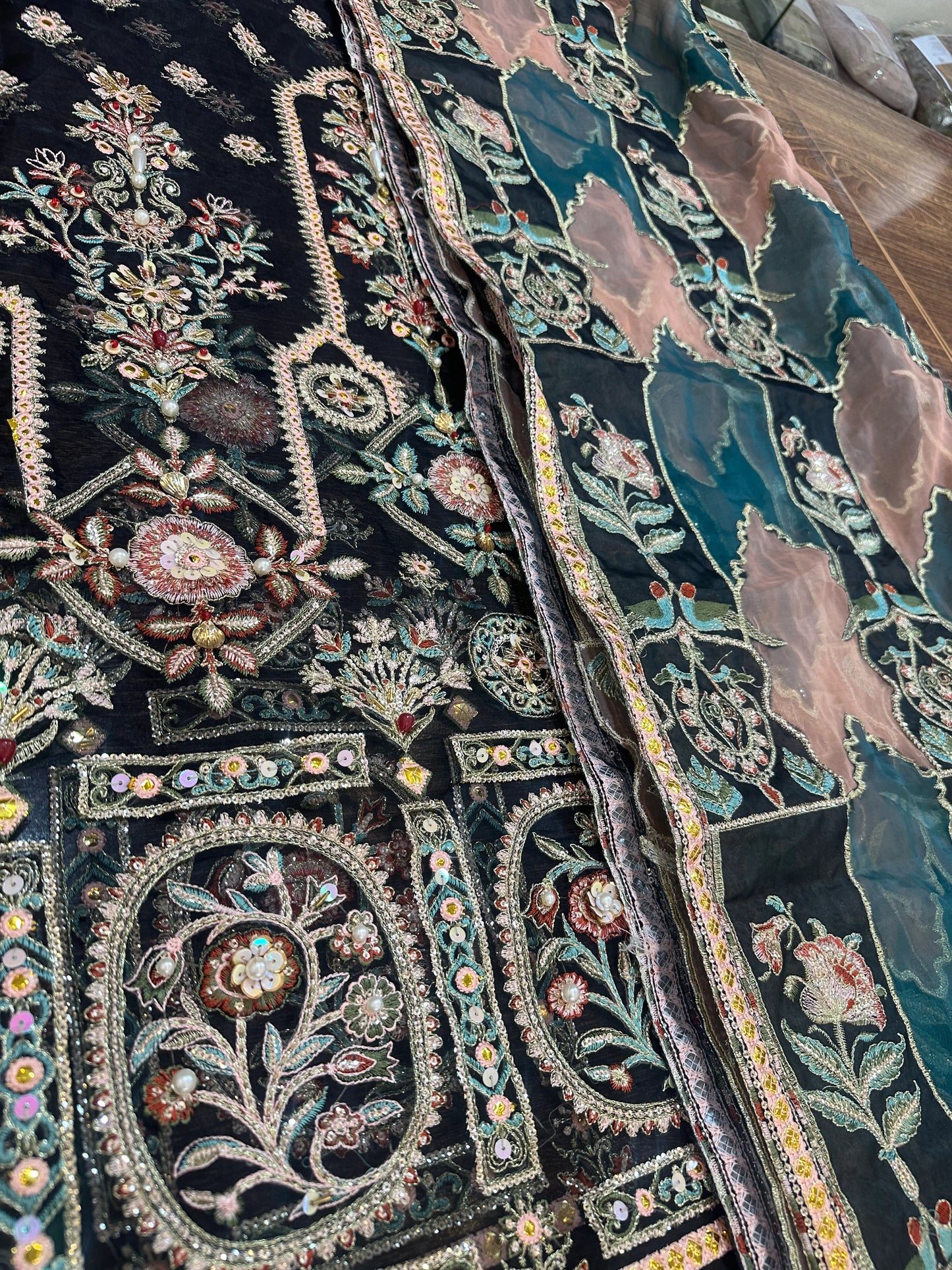Hand Embroidered Velvet + Pure Raw Silk Chunnari Suit Size 44