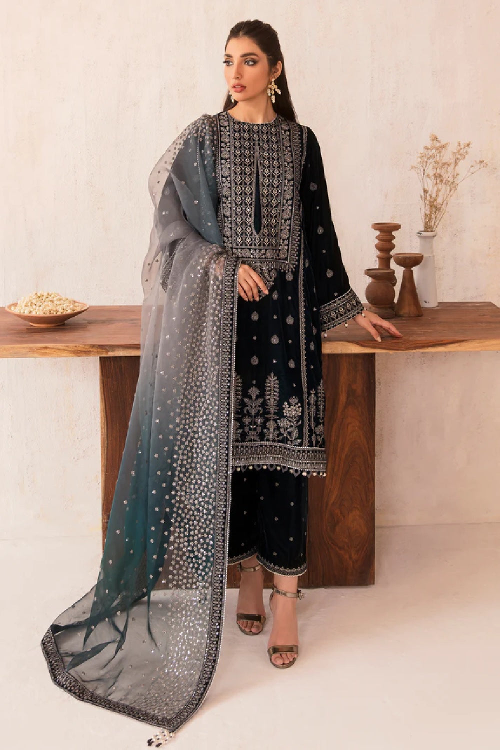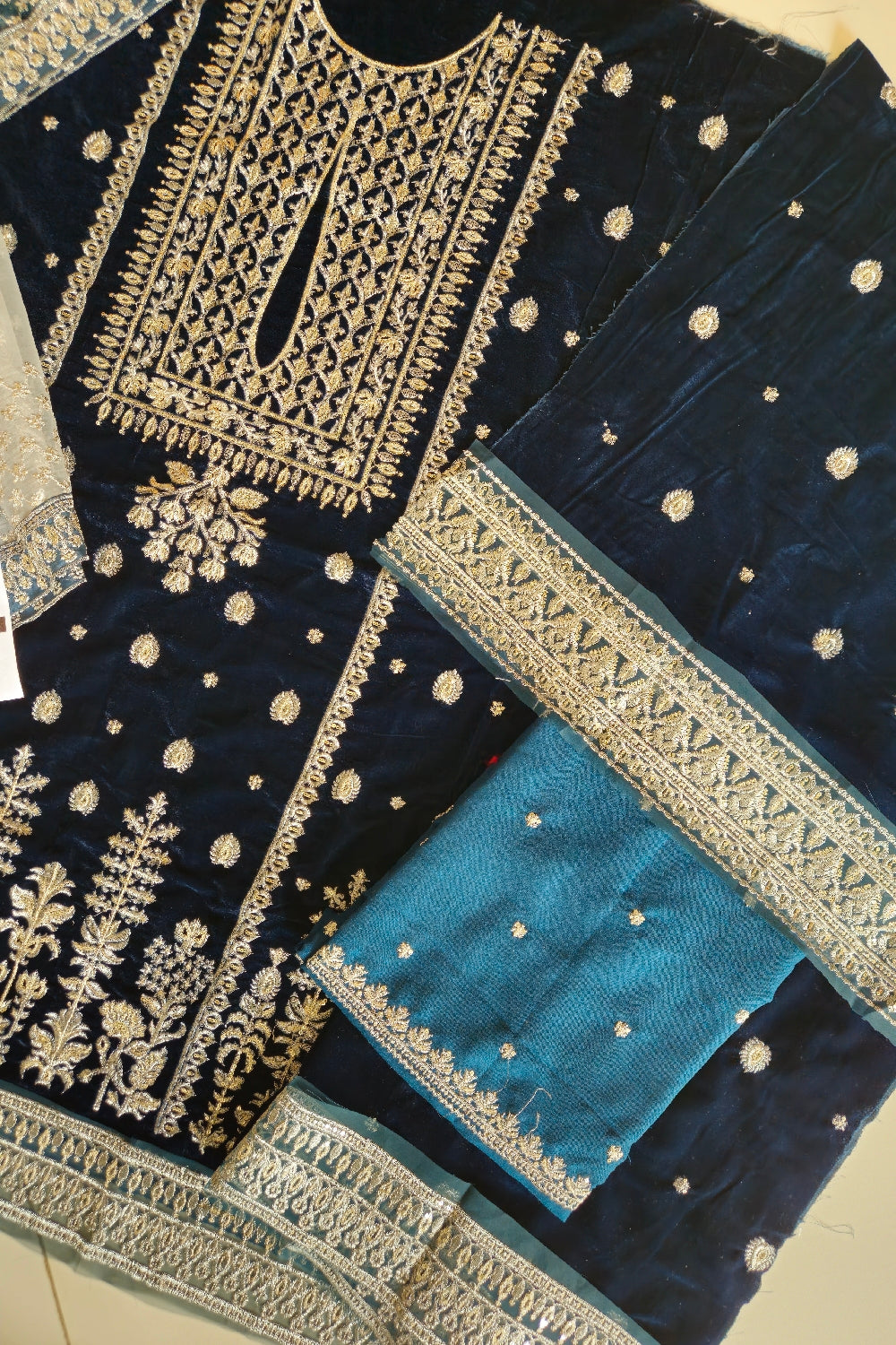 Peacock Velvet Suit with Sequins Work