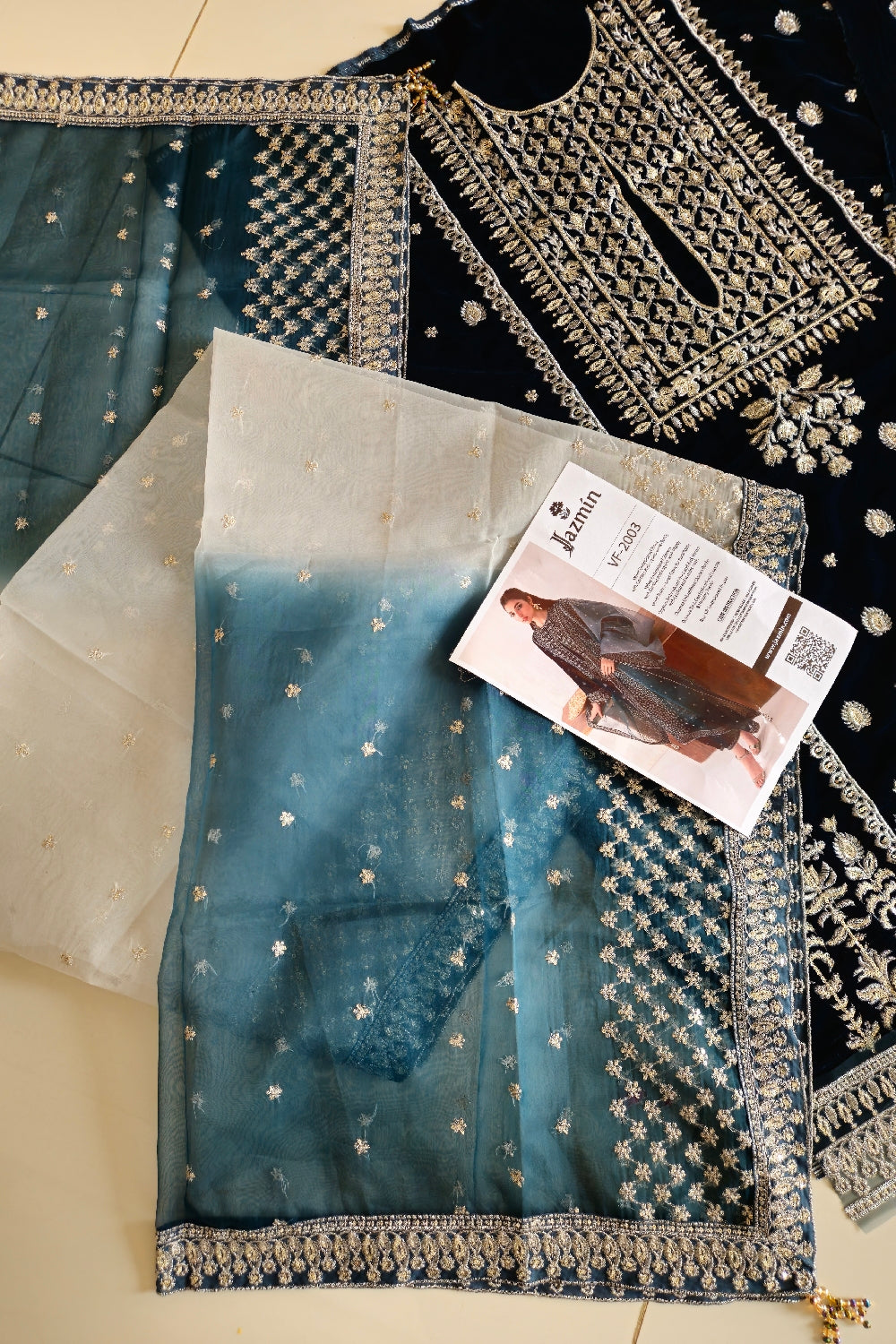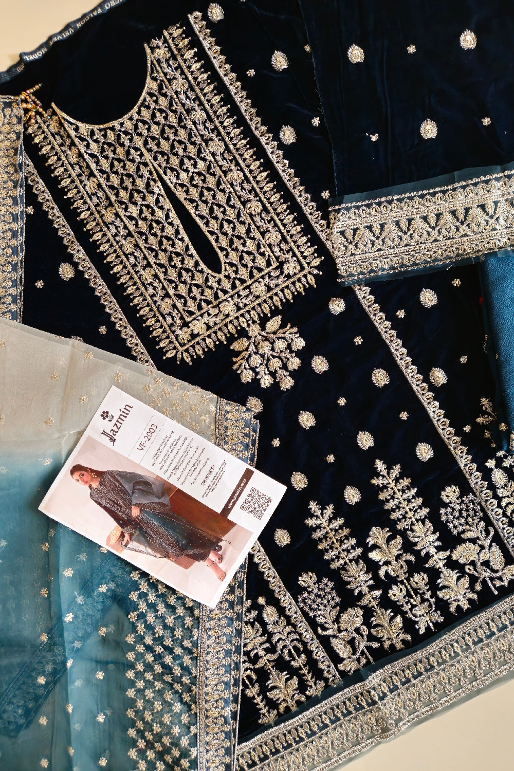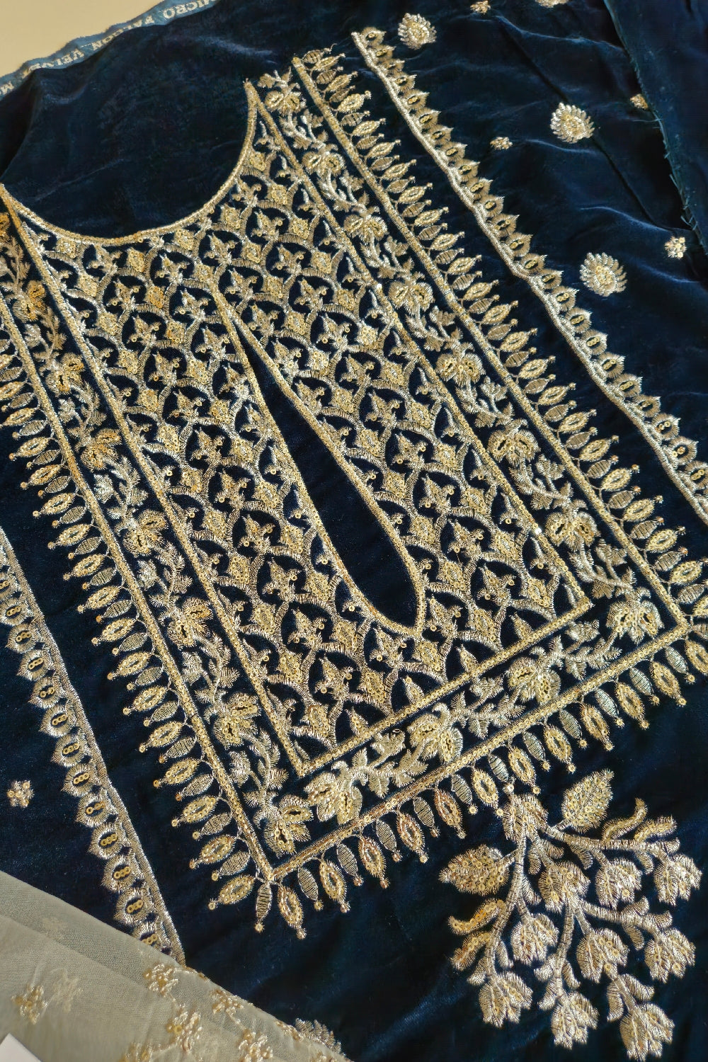 Embroidered Pure Velvet Back.