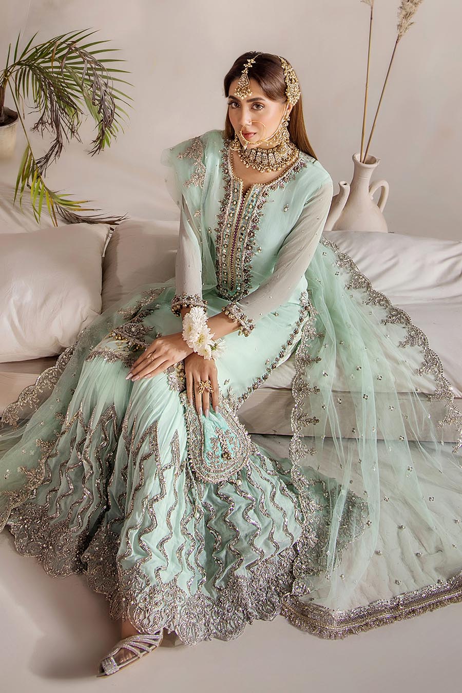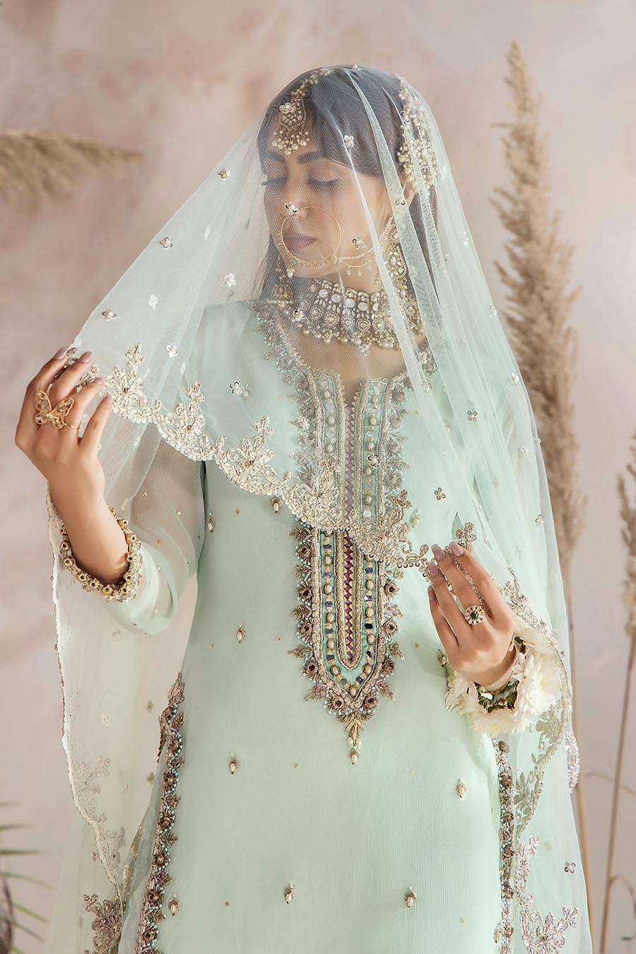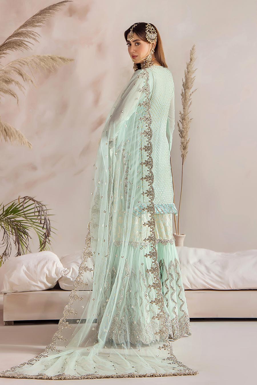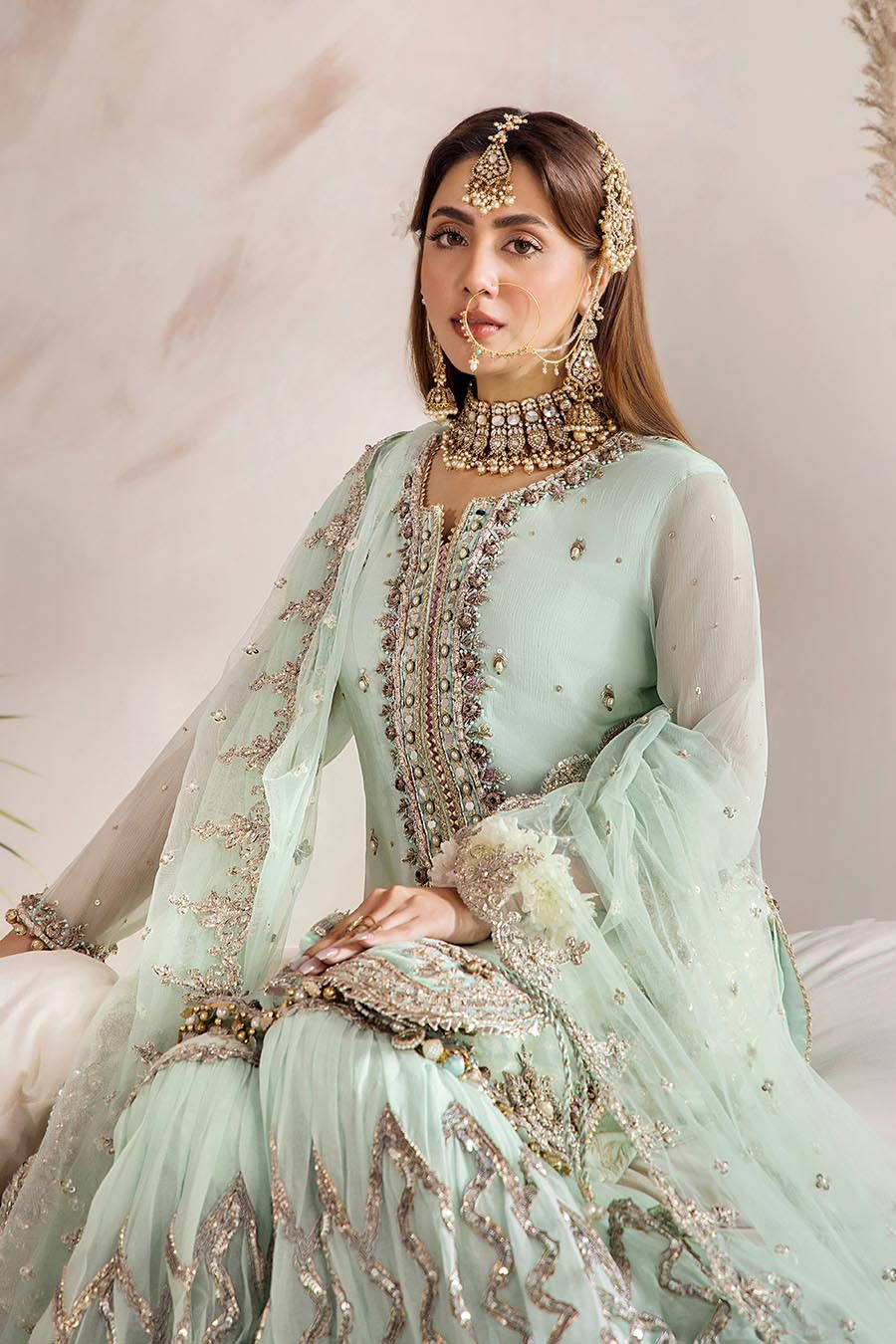 • Lower Portion: Crinkle Chiffon (Embroidered with Sequins and Gotta)