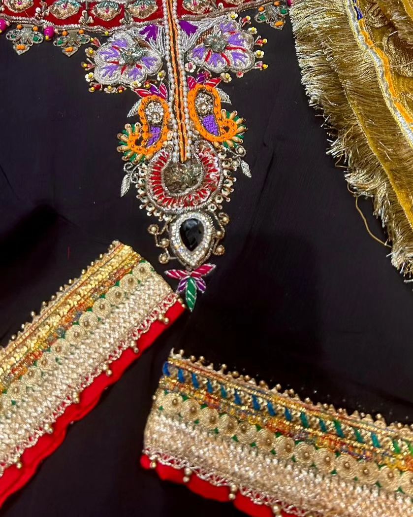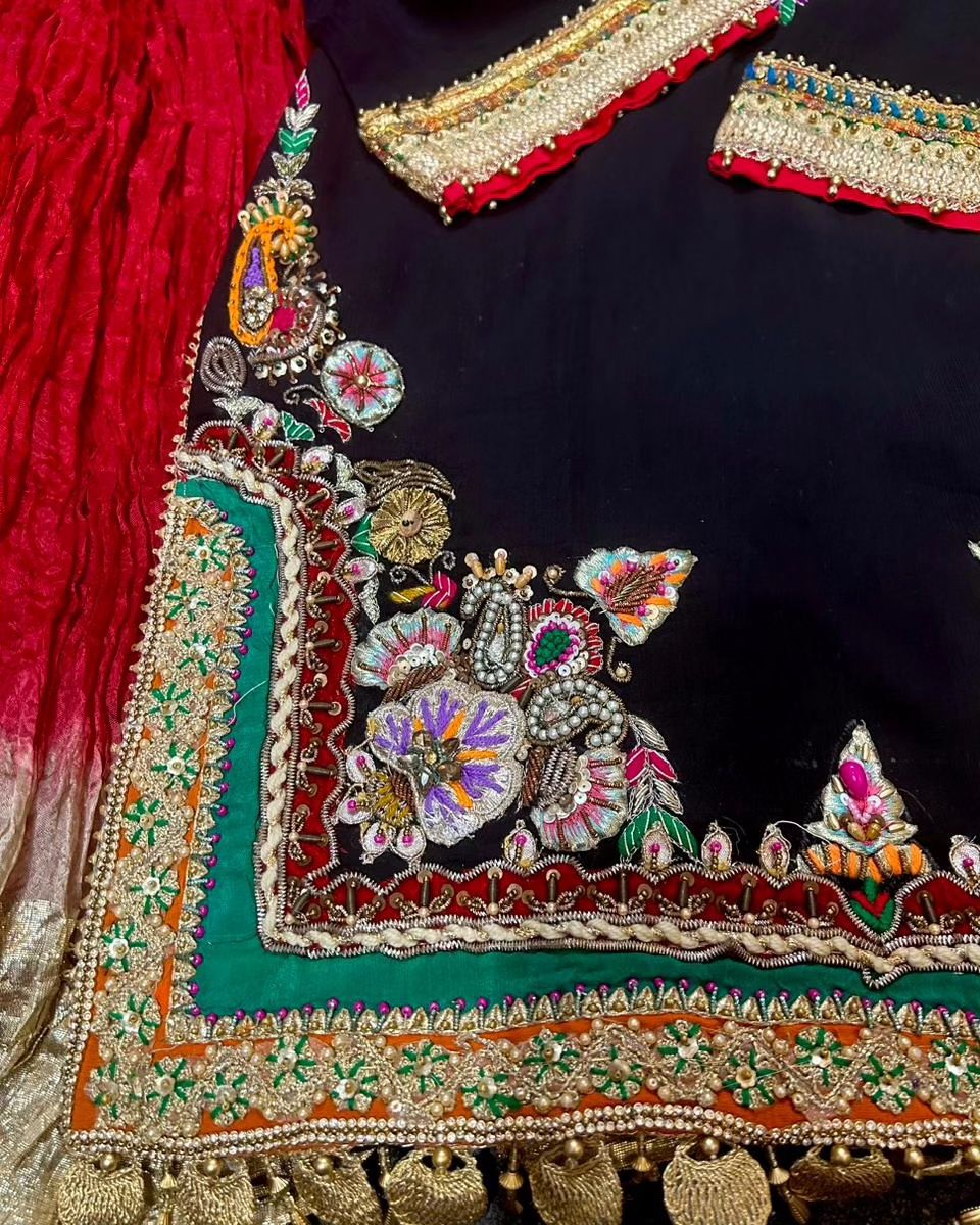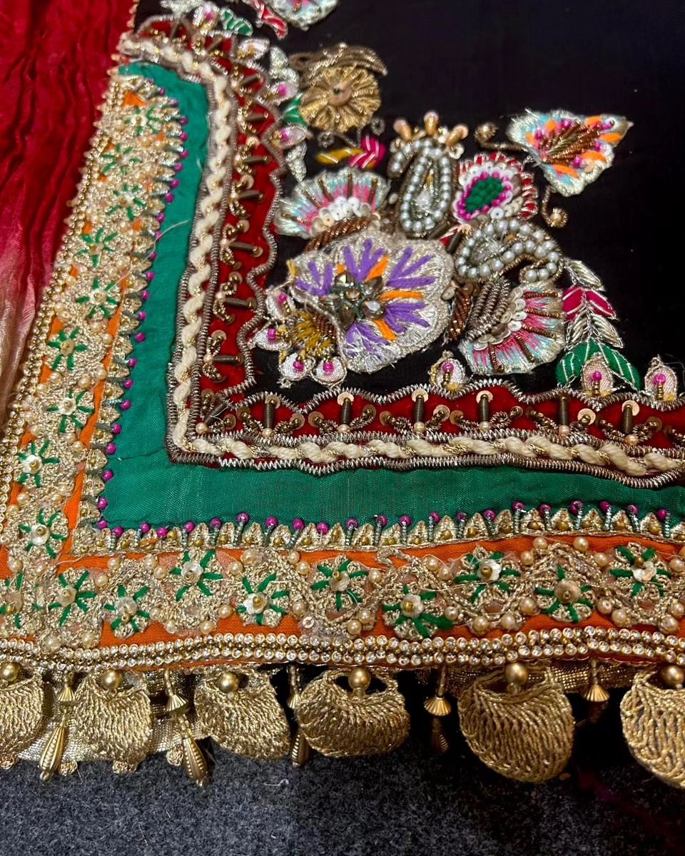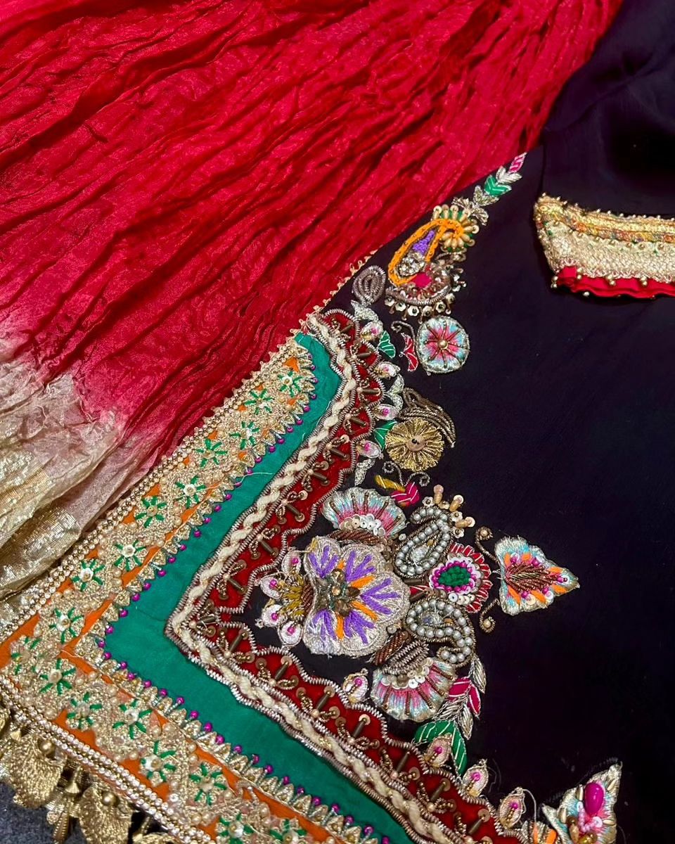 Hand Embroidered Velvet + Pure Raw Silk Chunnari Suit Size 44